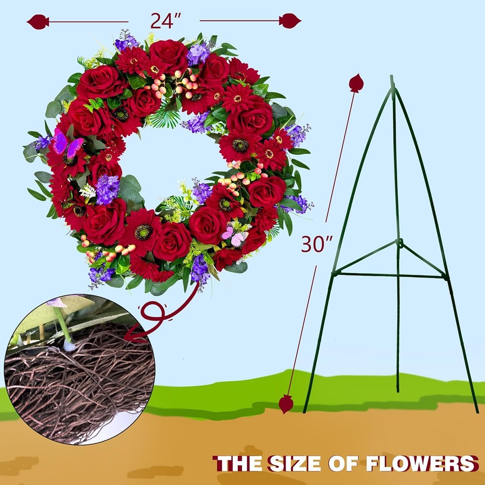 Cemetery Wreath for Grave, Red Roses Memorial Wreath with 30 Inch Easeal Stand, Fade-Resistant Item Description About this item 🌺 Ready-to-Use Convenience This complete 24-inch cemetery wreath arrives pre-assembled on a sturdy 30-inch easel - simply unpack and display. Perfect for busy families seeking beautiful grave decorations without assembly hassles 🌺 Vibrant Everlasting Beauty Crafted with red velvet rose lavender gerbera sunflower and other flowers, our weather-resistant cemetery wreath for grave sites maintains its vivid colors year-round. No wilting petals, falling leaves, or messy cleanup - just perpetual springtime elegance 🌺 Dual-Purpose Memorial Decor Honor loved ones with this versatile grave wreath designed for both cemetery use and home tributes. The weighted easel base works equally well on front porches, walls, or windows, bringing comforting spring symbolism to any sacred space 🌺 All-Weather Durability Our professional-grade cemetery wreath for grave displays withstands harsh sunlight, rain, and snow. Featuring UV-resistant foliage and rust-proof components, this low-maintenance memorial wreath stays securely intact without rotting or shedding 🌺 Artisan-Crafted Quality Meticulously hand-shaped by floral artists using premium silk blooms and flexible stems. Pro Tip: If leaves obstruct flowers upon arrival, gently reshape the wreath by smoothing wrinkles, repositioning foliage, and securing with a steam iron for a flawless finish › See more product details Payment We accept payment only through PAYPAL Shipping We ship products worldwide through standard express courier service, it will reach within 7 to 10 days to abroad buyers, we ship the product after recieved clear payment and give full information about shipment to the buyer Return We accept product return within 7 to 21 days from delivery date but product should be in original position and not in damaged condition,the return shipping charges will be buyer responsibility