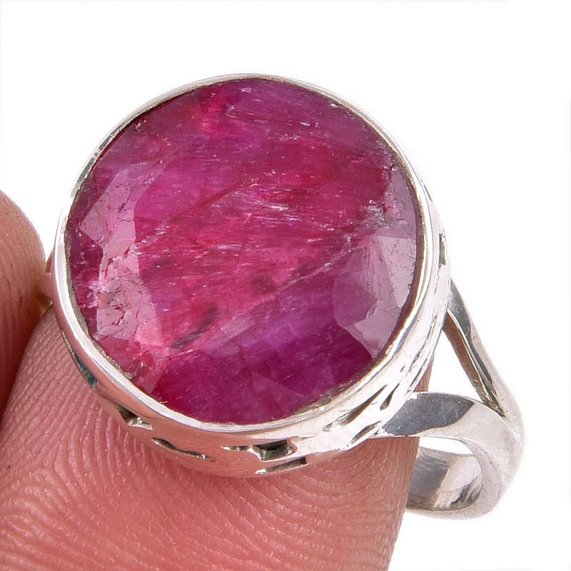Red Ruby(Simulated) Gemstone Handmade 925 Sterling Silver Jewelry Ring S.10
