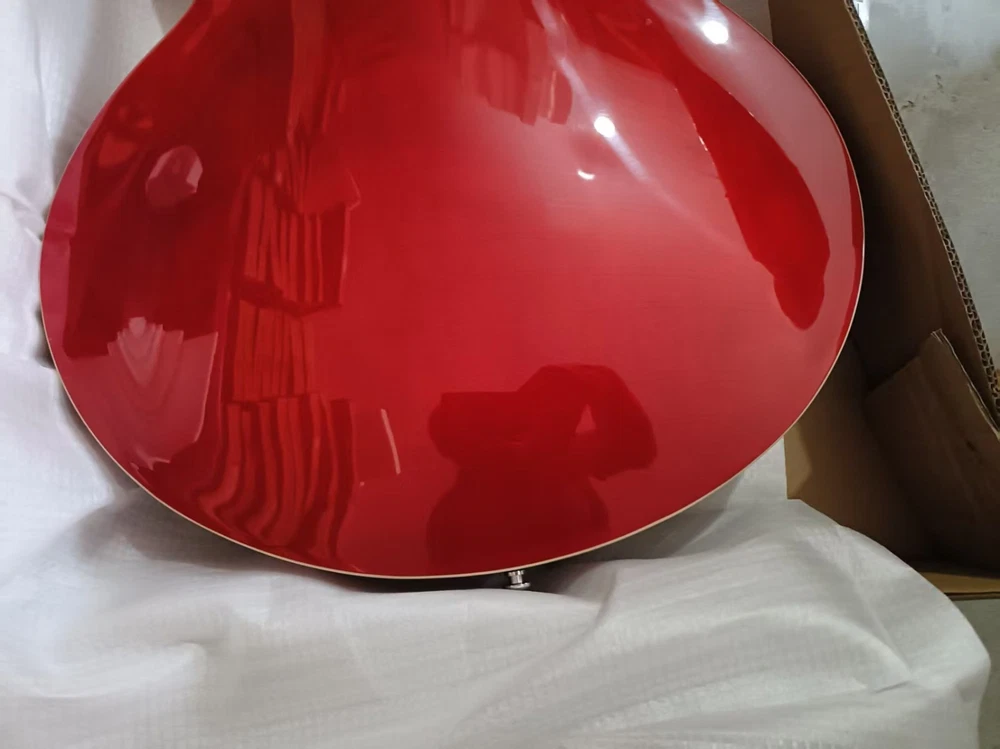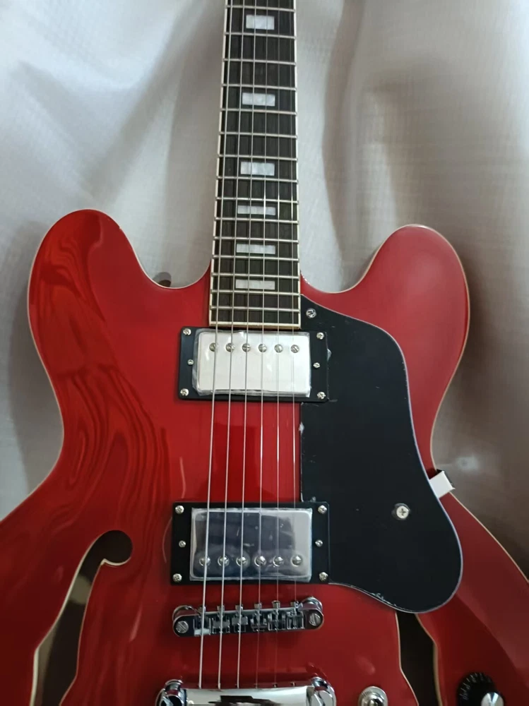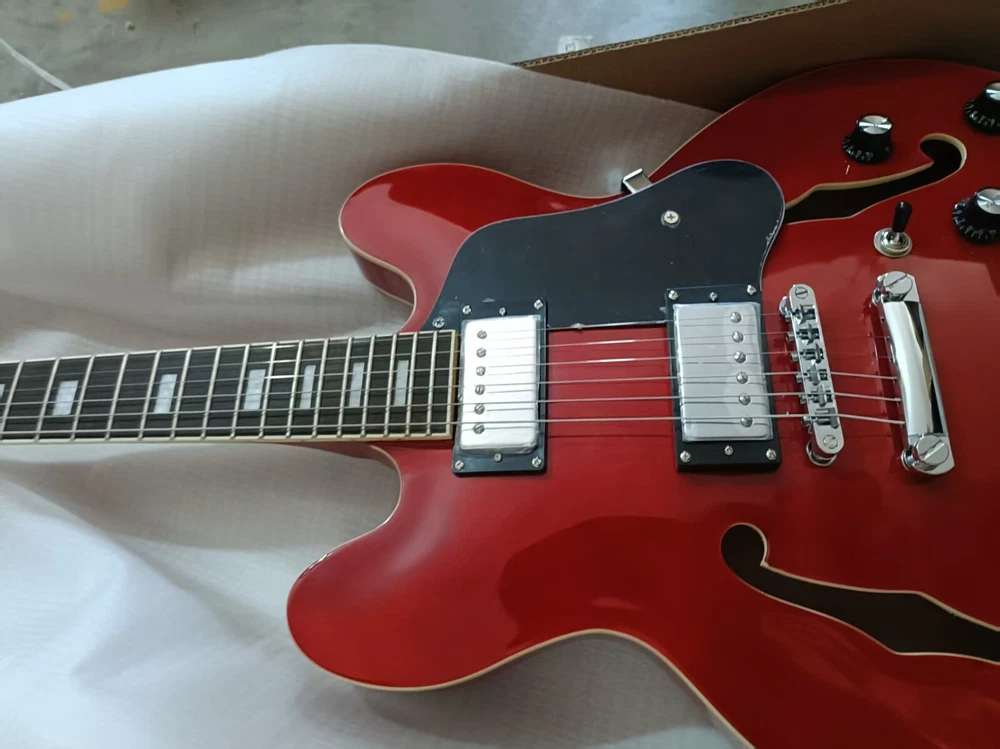 Semi Hollow Red 335 Electric Guitar with Scalloped Square Inlays