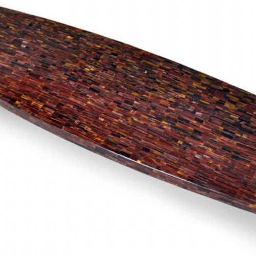 Welcome To Unique-Handicrafts Shop Description Very unique Art by Indian Artist ,Coffee/Side Table top Used Material: Tiger Eye Stones Arts Size: 24"x12" inch Color: As Photo Shape: As Photo Pattern: Handmade Room: Bedroom, Dining Room, Hallway, Home Office/Study, Kid’s Bedroom, Kitchen, Laundry/Utility Room, Living Room,Patio, Playroom Packaging: Wood & Foam Export Packing Shipping: Air Can Be customize ,Please Message us your desired Size 1. It can be used as a Dining Table, Guest table, coffee table, center table top in show room as well as a gift for your loved ones. 2. The table top is made in Agra India & fully handmade. 3. The top will be delivered by FedEx or DHL free of cost door to door. 4. If there is any local tax,custom duties or Vat will be paid by the buyer at the destination. 5. The parcel is dispatch with proper packing & fully insured covering all kind of risk. 6. To maintain the table top is simple soap & water & dry cotton cloth. 7. If You Are Looking Something Customize, Let Us Know We Will Make For You As Per Your Design, Size & Shape. 8.Table top does not includes any wooden, marble stand or base if you like to buy marble or wooden base or stand that will be charged extra. Marble Agate Table Tops We are Manufacturer & Exporter of marble agate table tops. These marble agate table tops have different shapes like Round Table top, Octagonal Table Tops, Rectangle / Dining table tops, Square Table tops, Chess Table tops, Taj Mahal Table tops, Custom Designs Table tops also make marble Table top Base and Stand. Then we can be used as dining tables, coffee tables, Center tables, conference tables, chess boards, reading tables, bar tables , Garden table, side and corner tables or any other use as per the indoor and outdoor decor. They can also be placed outdoors in the garden, as marble is stain free, offers great resistance to the forces of nature, and can withstand heavy temperatures. We also meet customized requirement and offer our marble table tops at industry leading prices. About Agate Stone- Agate is a rock consisting primarily of cryptocrystalline silica, chiefly chalcedony, alternating with microgranular quartz. It is characterized by its fineness of grain and variety of color. Although agates may be found in various kinds of host rock, they are classically associated with volcanic rocks and can be common in certain metamorphic rocks. Ancient use of agate stone Agate is one of the most common materials used in the art of hardstone carving, and has been recovered at a number of ancient sites, indicating its widespread use in the ancient world; for example, archaeological recovery at the Knossos site on Crete illustrates its role in Bronze Age Minoan culture Types Of Agate 1. Fortification Agate This is the most common and distinctive type of agate. In these agates, bands crystallized into concentric layers that more or less follow the shape of the cavity. The banding resembles an aerial view of a fort 2. Water-Line Agate (also called water-level or onyx) During its formation, silica-rich solution either entered the cavity slowly laying one band at a time, excess water drained out leaving a small amount of silica to settle out into separate bands, or the vesicle filled under low pressure. In any case, the silica crystallization in water-level agates is controlled by gravity in one orientation, forming a stack up of parallel bands. 3. Shadow Agate Some agates exhibit a shadow effect in which there is what appears to be movement across the agate layers when the specimen is rocked back and forth (or your orientation to the specimen moves). This optical effect only occurs when there are alternating translucent and opaque bands. It is caused when light goes into the agate, but is not reflected out. 4. Tube Agate Tube Agate During the formation of some agates, parallel projections of tiny hair-thin mineral rods grow first within the silica gel, around which later the chalcedony agate micro-crystals form. In some cases the inclusions remain, but sometimes they weather away leaving hollow tubes that subsequently fill in with silica. 5. Eye Agates This mysterious agate characteristic is believed to be formed when most of the silica gel drains from the cavity, leaving only a droplet that “beads up” on the inside wall of the cavity. This droplet crystallizes into solid chalcedony “eyes”. In some cases, crystal growth will continue from this droplet in a manner similar to the formation of stalactites in caves. Later, the pocket fills in with the usual deposition of chalcedony microcrystals. 6. Plume Agate These agates initially had formations on their outside layer that formed prior to the deposition of chalcedony bands. They are filament growths of mineral inclusions that resemble ferns or feathers. 7. Geode Agate Geode Agate In some cases the supply of silica-rich water runs out before the entire cavity fills in. When there is a hollow center within a crystalline outer fill, the specimen is considered a geode. Not all geodes have agate banding, but many do. Also, the inner layers can form into several different types of silica mineral crystals and may even have other types of mineral crystals. 8. Moss Agate Moss Agate Moss agates have clusters of mineral inclusions that resemble plants, trees, or landscapes. Most moss agate inclusions are comprised of iron or manganese oxide. In some cases, the inclusions inhibit chalcedony banding allowing the mineral clusters free reign to grow within the silica gel. 9. Seam Agate Seam agates for in cracks within host rock, rather than in rounder pockets. The bands form in parallel rows that follow and fill in the crack or seam.