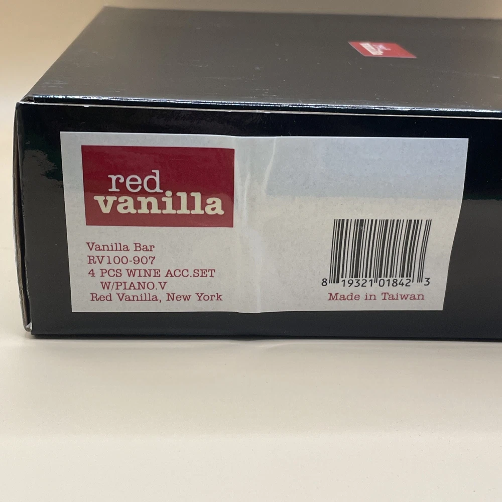 Elevate your wine collection with this Red Vanilla Bar 4-Piece Wine Accessory Set. Crafted from high-quality laquered wood with a mahogany finish, this set includes all the necessary wine tools for any occasion. The set comes in a beautiful box, making it a perfect gift for any wine lover. The set includes a wine stopper, wine pourer, corkscrew, and drip ring, all designed to make your wine experience more enjoyable. Whether for a special occasion or a casual night in, this wine accessory set will impress. Add a touch of elegance to your bar with this stunning set.