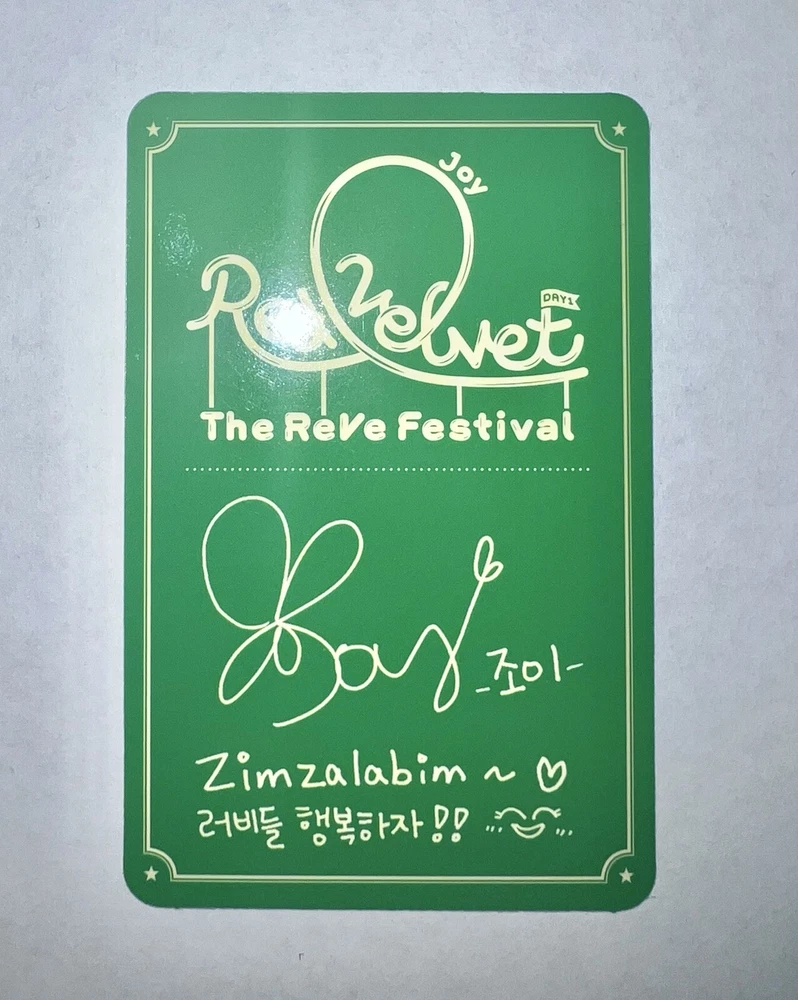 Red Velvet Official Reve Festival Day 1 Album: Joy Member Cover & Photocard. The photocard is in mint condition. The album plastic case scratches. The album has all original inclusions.