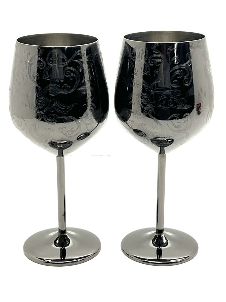 Enhance your wine-drinking experience with these elegant Sky Fish Royal Wine Cups. Crafted from premium stainless steel, these modern-style goblets come in a sleek black color with an etched pattern that adds a touch of sophistication to your table setting. The round shape and 8.25-inch height of each goblet make it easy to hold and enjoy your favorite red wine.