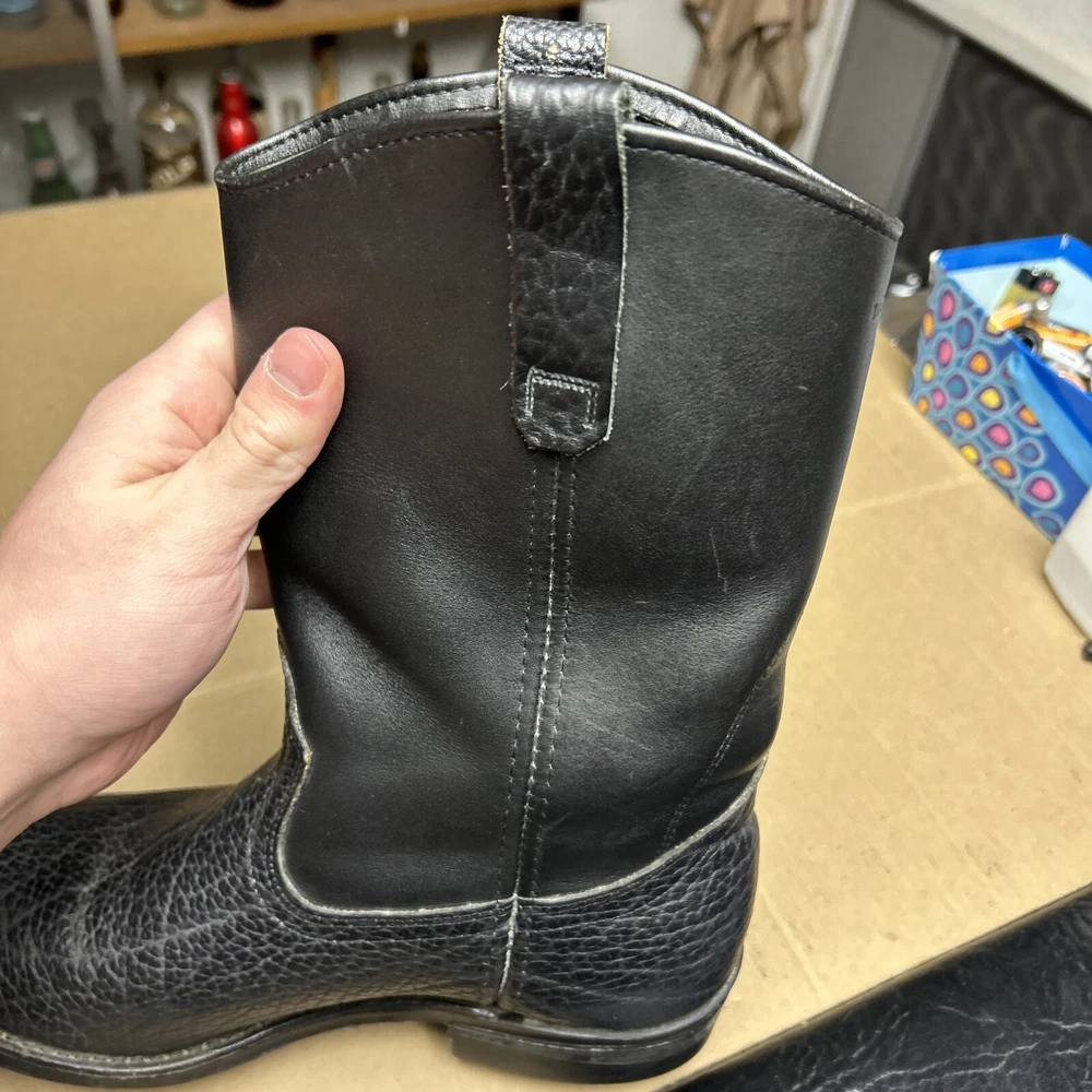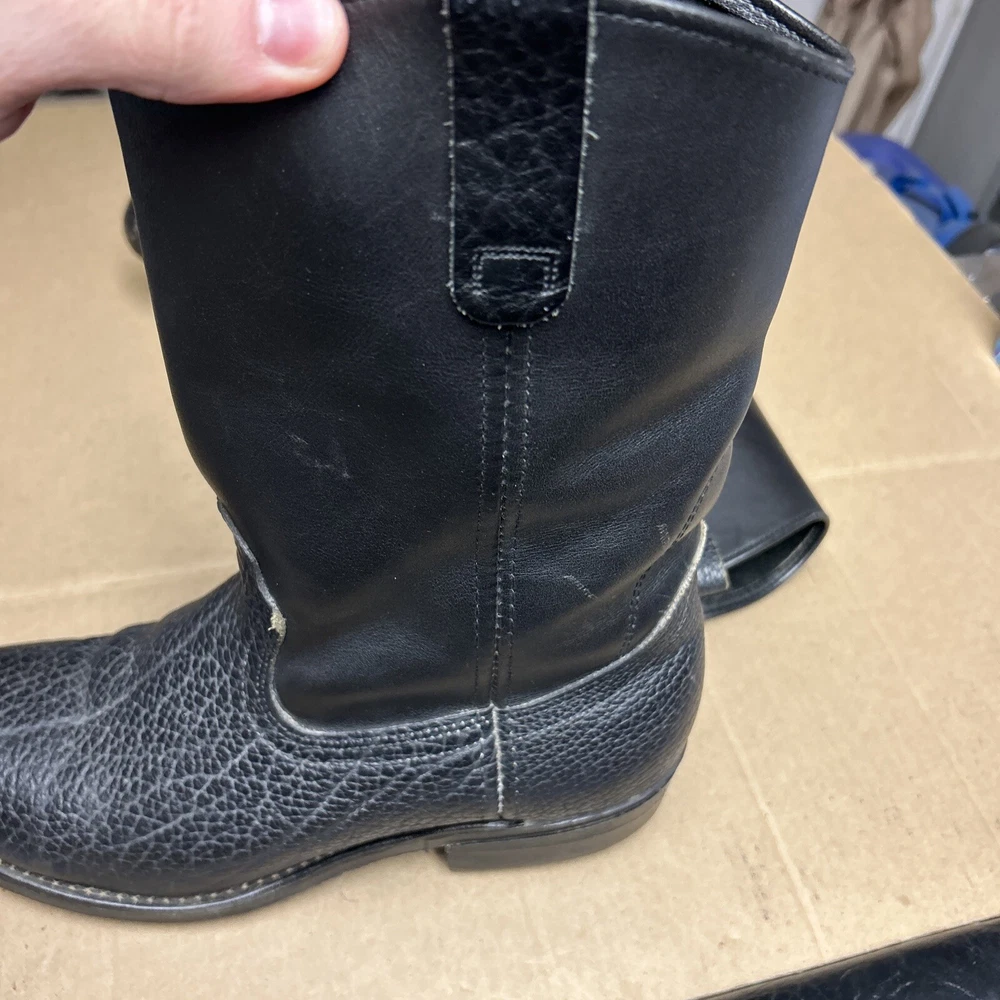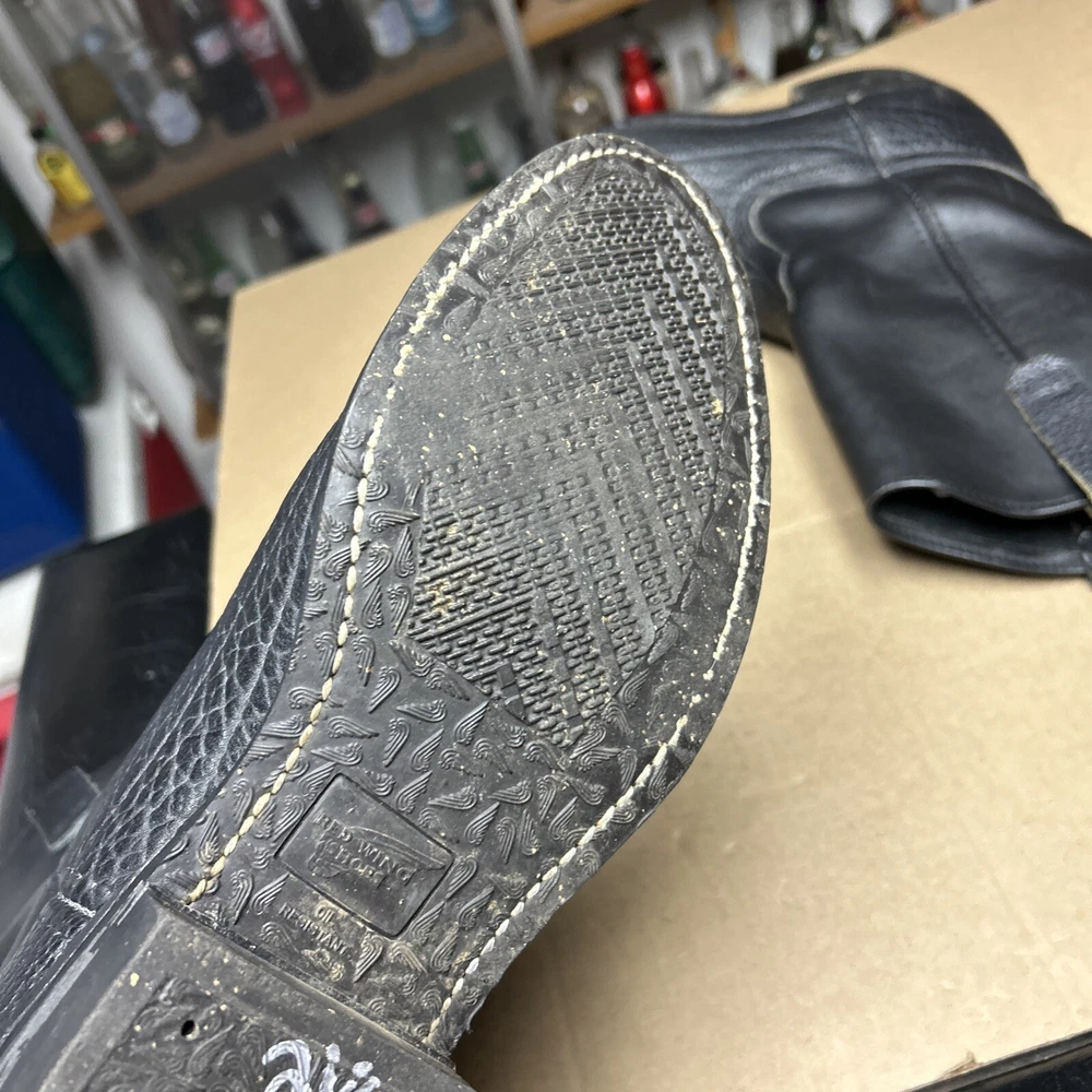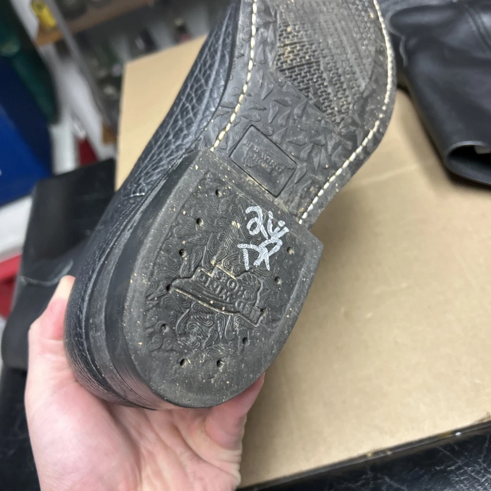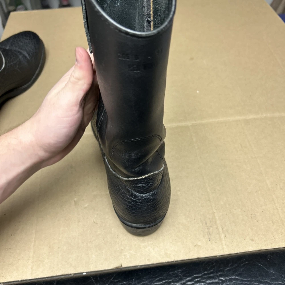 The boots have some signs of wear and use in various places. The leather has some marks, scuffs, and scratches in various places. The leather has been reconditioned a bit in a few places. The soles have a good hit of wear to the heels and the middles. The midsoles have some wear and marks to it. See pictures to see the item.