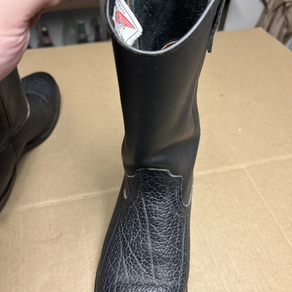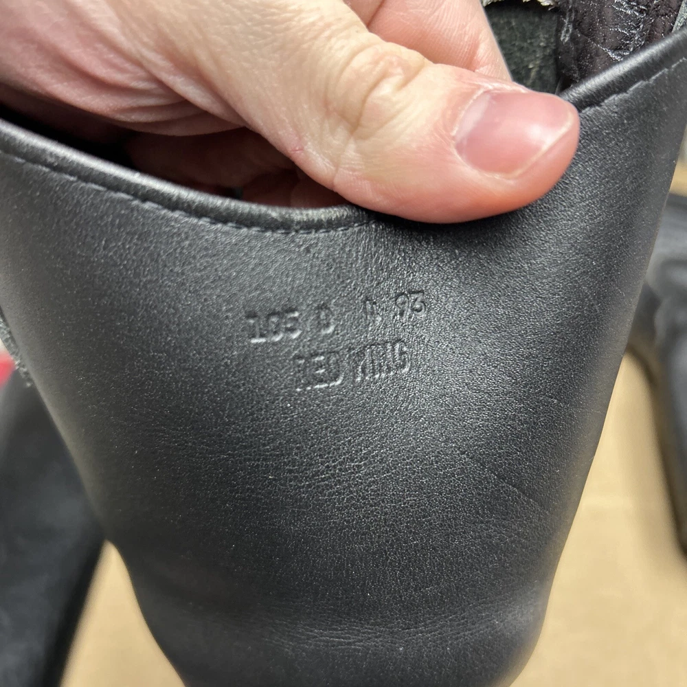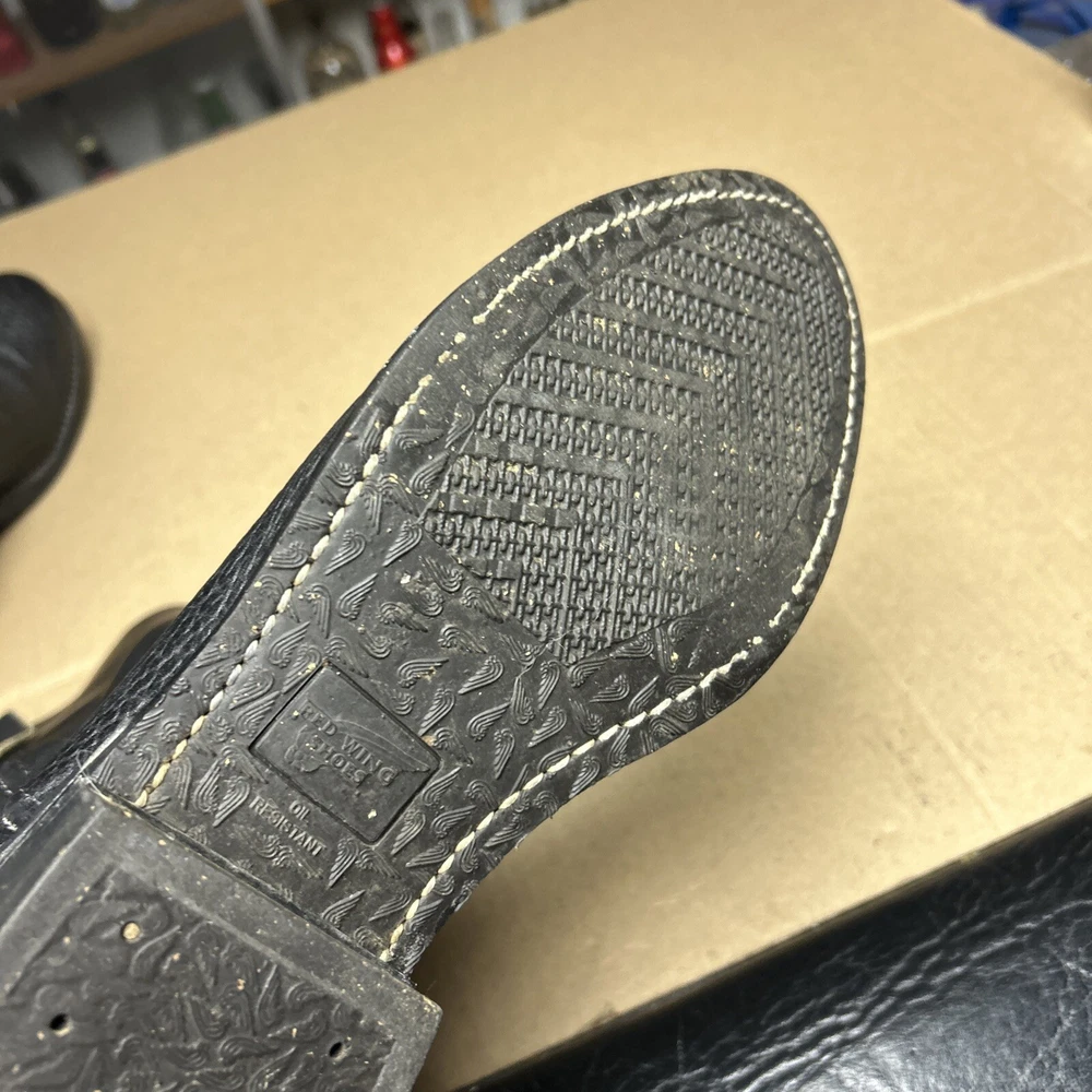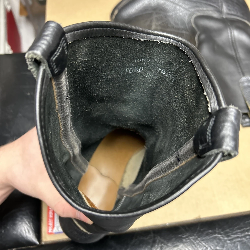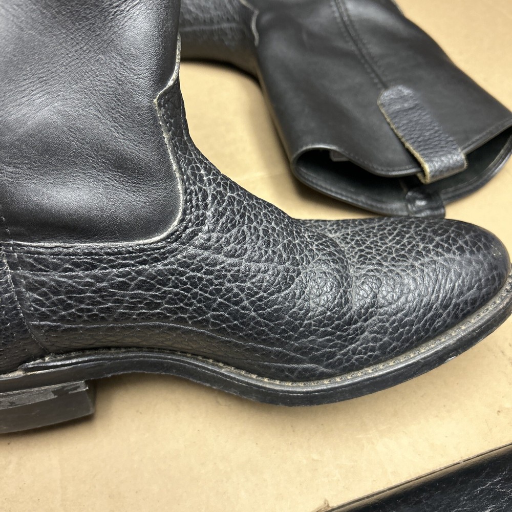 The boots have some signs of wear and use in various places. The leather has some marks, scuffs, and scratches in various places. The leather has been reconditioned a bit in a few places. The soles have a good hit of wear to the heels and the middles. The midsoles have some wear and marks to it. See pictures to see the item.