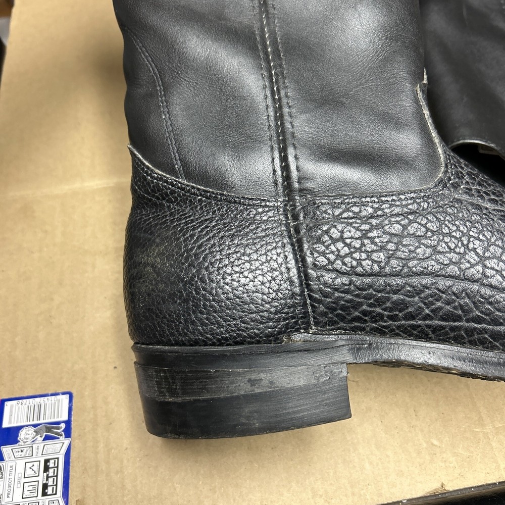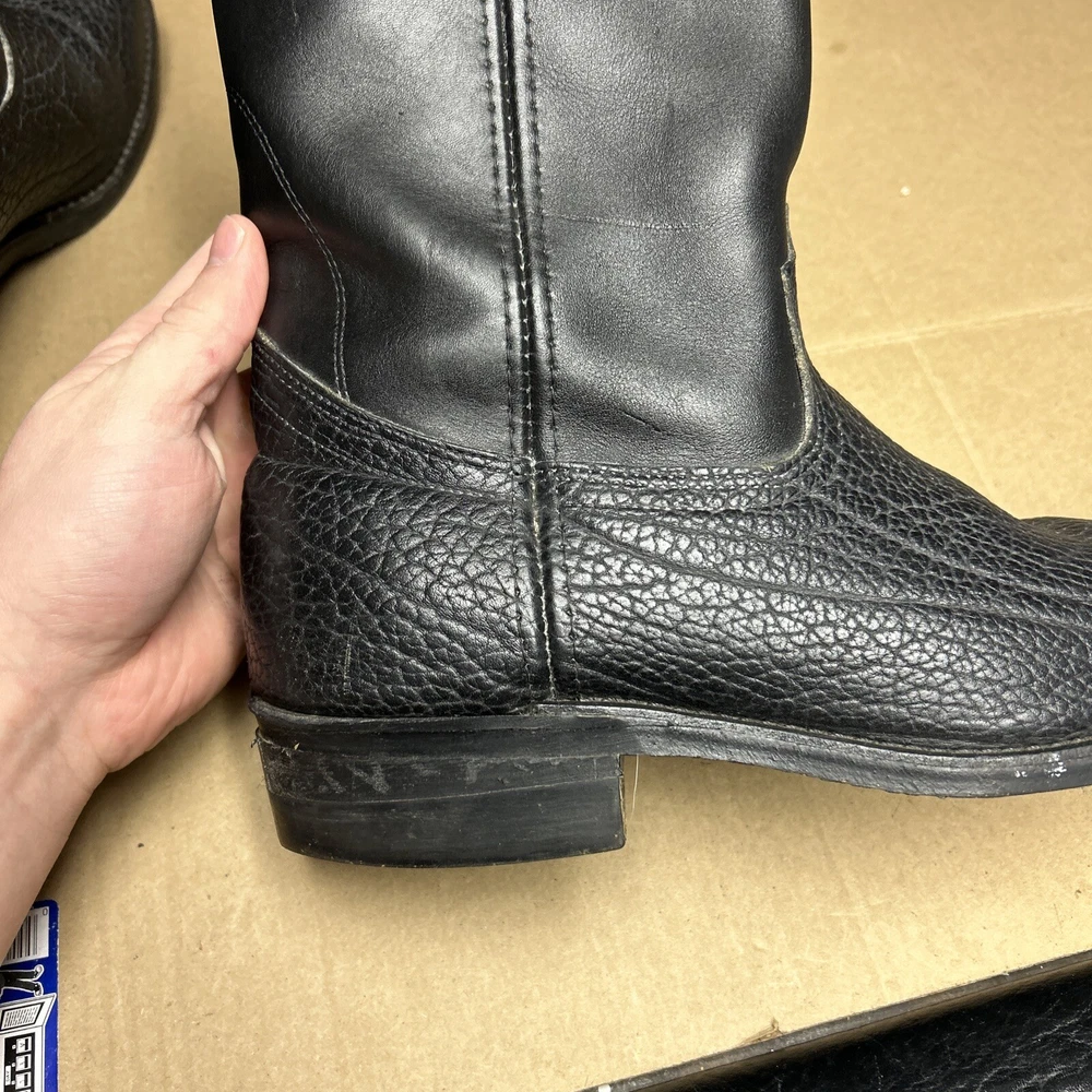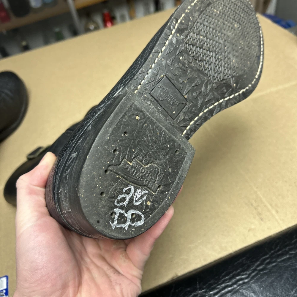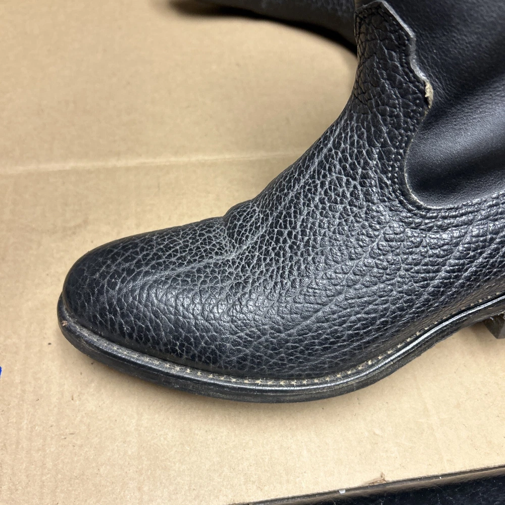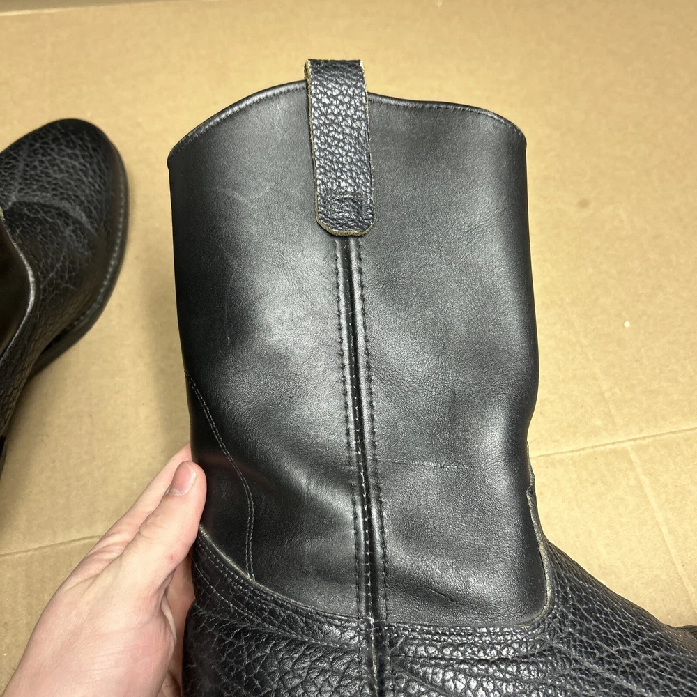 The boots have some signs of wear and use in various places. The leather has some marks, scuffs, and scratches in various places. The leather has been reconditioned a bit in a few places. The soles have a good hit of wear to the heels and the middles. The midsoles have some wear and marks to it. See pictures to see the item.