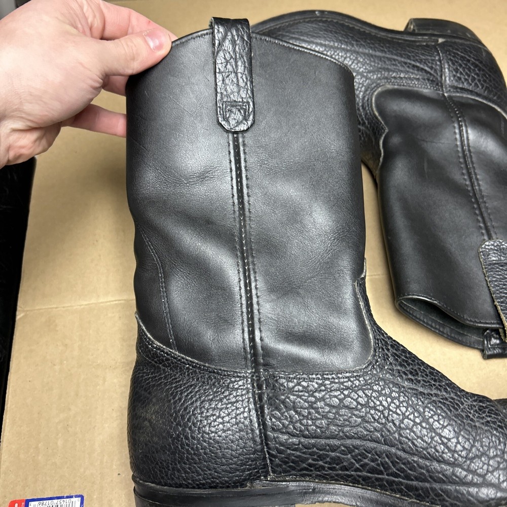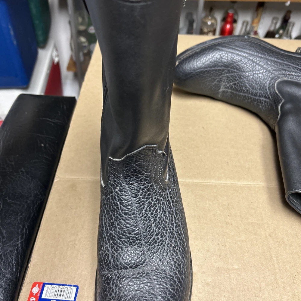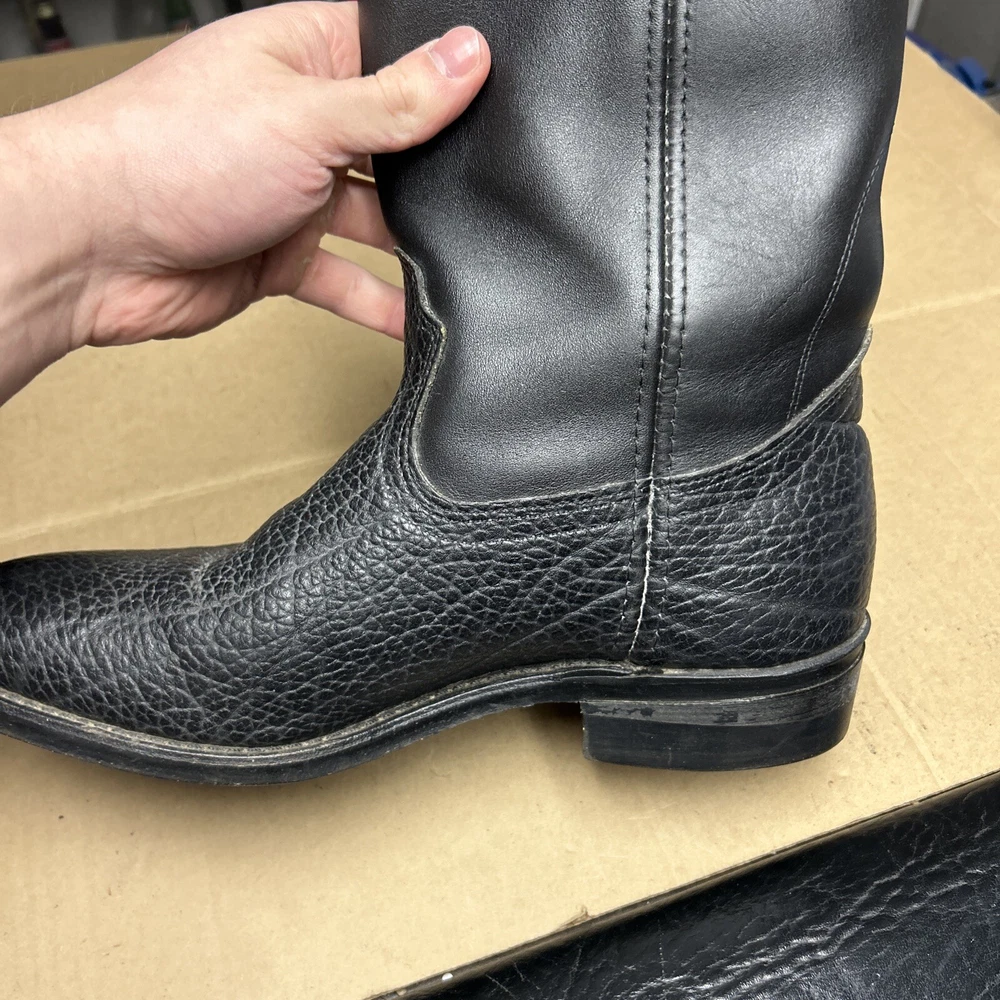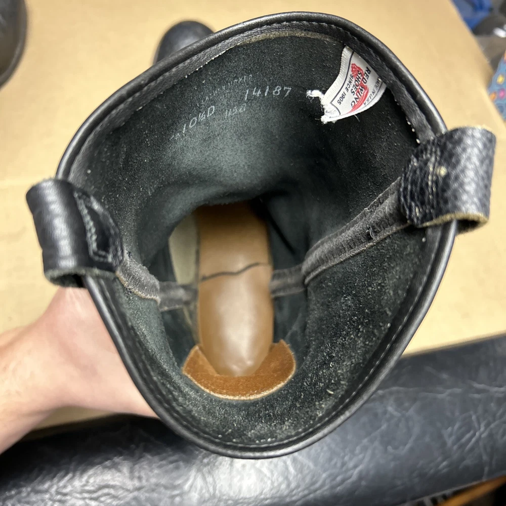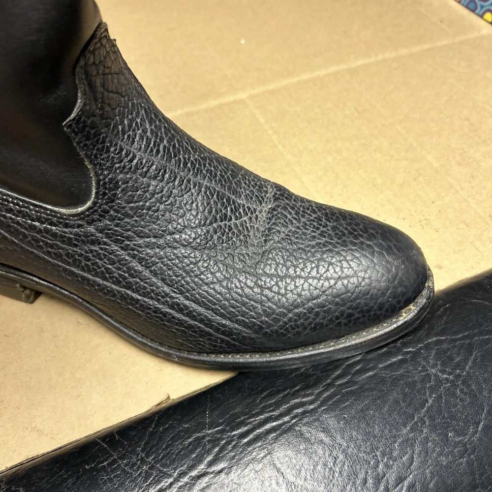 The boots have some signs of wear and use in various places. The leather has some marks, scuffs, and scratches in various places. The leather has been reconditioned a bit in a few places. The soles have a good hit of wear to the heels and the middles. The midsoles have some wear and marks to it. See pictures to see the item.