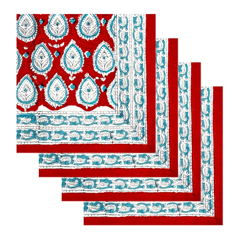 Vibrant Indian Hand Block Printed Cotton Napkins in Yellow & Red