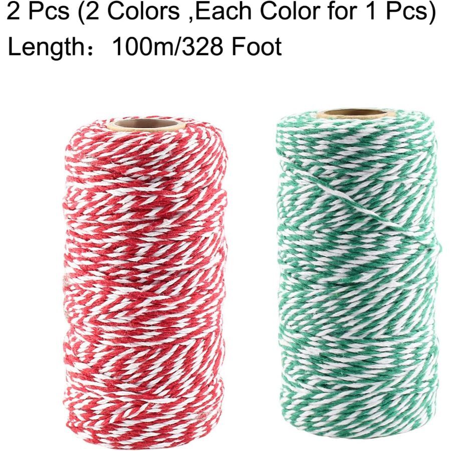 About this item Package Includes: 2 rolls x cotton rope, each roll is 100m/328foot long High Quality Material: Twine is made of food grade cotton, with sufficient strength, and will not break easily. Environmental friendly materials can be naturally decomposed Easy to Use: Twine is wound on a coil, so you only need to cut off the length you need, and the rest will not be wound, so it is convenient to use Multi Application: Twine is suitable for home and shops, baking, butcher shop and florist, book binding, gift packaging and DIY design Dimensions: 5.24 x 4.06 x 2.01 inches
