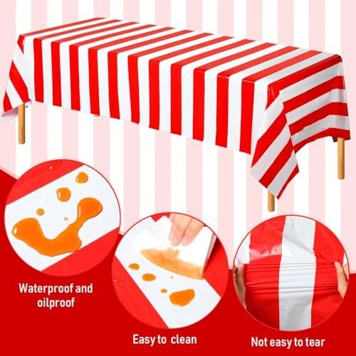 Return Policy Fast Delivery Trusted seller Red and White Striped Tablecloth Plastic Carnival Circus Table Cover Waterproof Rectangle Tablecloth for Holiday Party Picnic Decoration, 54 x 108 Inches(20 Pcs) Product Description Enough Table Clothes: you are provided with 20 pieces of red and white striped tablecloths, sufficient table covers can well meet your daily various needs, also you can share with others Well Made: the red and white stripe tablecloth is made of plastic, reliable and sturdy, waterproof and well made, can serve you for a long time; Suitable for decorating a carnival party, or paired with other carnival decorations, such as carnival flags and napkins Easy to Use: after the party is over, the red and white stripe table cloths can be reused and rinsed with water; Or use them once for easy cleaning and roll up the tablecloths and throw them away Large Table Cover: these tablecloths for rectangle tables measure approximately 54 x 108 inches/ 137 x 274 cm, large enough for protecting your table from scratches and bring a nice visual effect Widely Applicable: our red white striped tablecloth is suitable for various occasions, such as carnival parties, birthday parties, Christmas holiday favors and 80's parties or events; It is also suitable for farmhouse events, indoor and outdoor dining occasions and picnic parties Shipping Returns Payment Shipping Shipping is FREE to all addresses other than APO/PO boxes in the lower 48 states. All our stock ships from US-based warehouses. Shipped via USPS or UPS (depending on location and package weight) Unless stated otherwise, all orders will ship within 24-72 hours of your payment being processed. Check our feedback to see the great reviews of FAST shipping we offer. Returns Seller does not accept returns Payment We currently accept payment via eBay managed payments only. Once payment is cleared, we will dispatch your shipment within 1-3 business days. Please refer to the "Shipping" tab for more information regarding shipping speed to your destination.