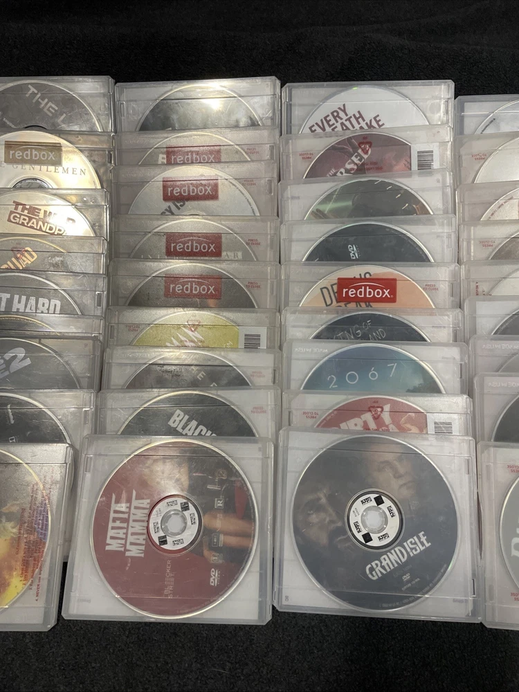 Please find below a list of the 36 DVD movie names: • 2067 • ARCHIVE • BAD MOMS • BLACK SITE • BLUMHOUSES'S FANTASY ISLAND • CANDYMAN • DADDY'S HOME 2 • DEVIL'S PEAK • DIRTY GRANDPA • EVERY BREATH YOU TAKE • FATHER STU • GET HARD • GRAND ISLE • INTERSTELLAR • IP MAN 4 • IP MAN KUNG FU MASTER • KINGSMAN THE GOLDEN CIRCLE • LAST SEEN ALIVE • MAFIA MAMMA • MAGGIE MOORE(S) • NOBODY • RANGO • REBORN • SUICIDE SQUAD • THE ACCURSED • THE BATMAN • THE CURSE OF LA LLORONA • THE GENTLEMEN • THE KING OF STATE ISLAND • THE LAIR • THE LAST DUEL • THE RENTAL • THE SEVENTH DAY • THE WAR GRANDPA • THE WOLF OF WALLSTREET • VENDETTA