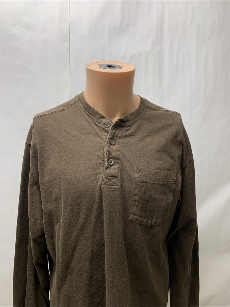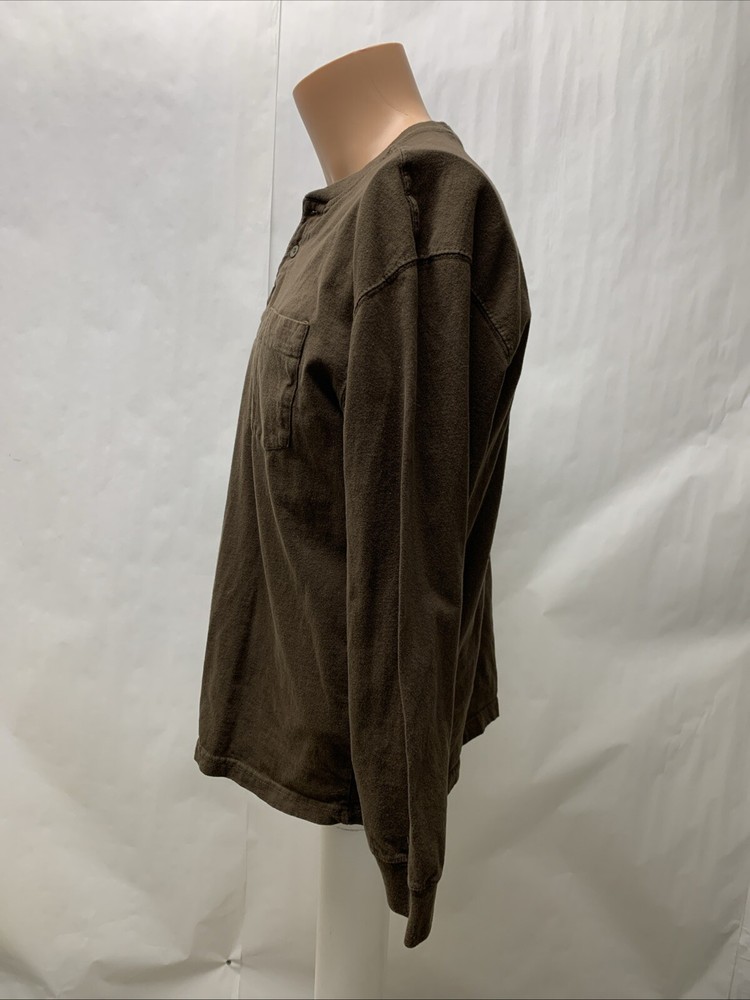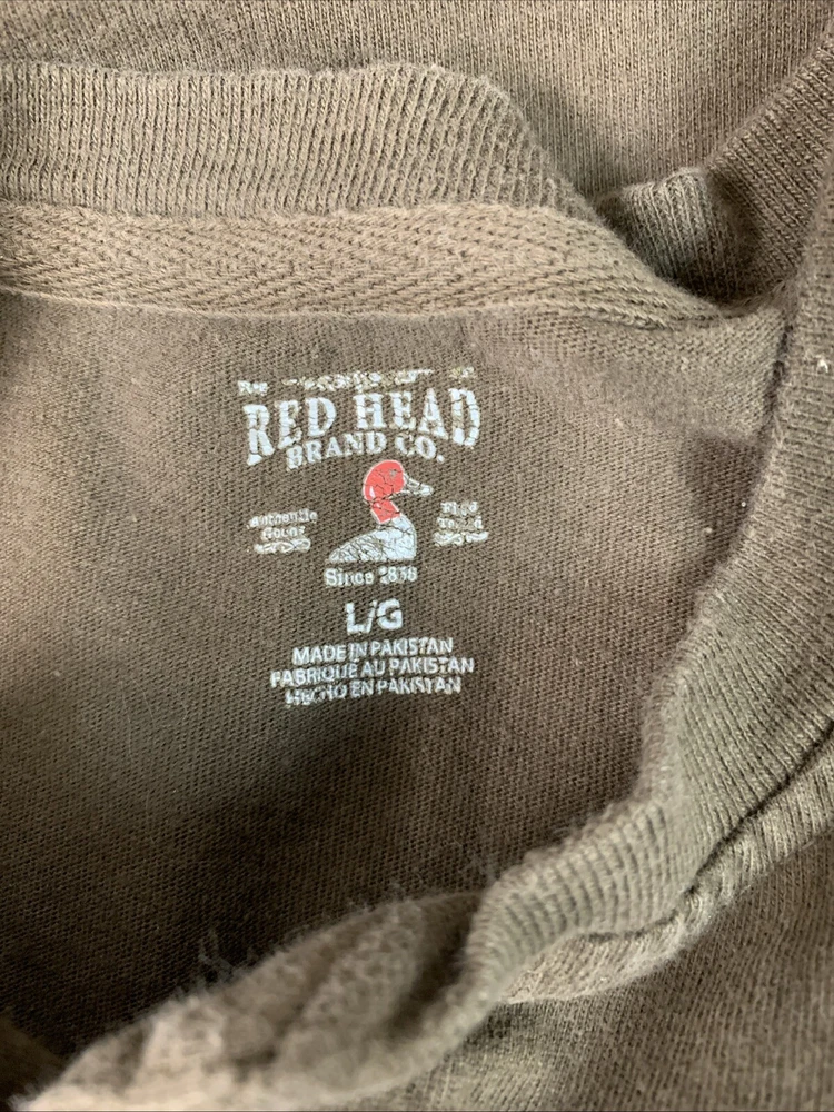 Redhead Men's 1/4 Button Pullover Brown Long Sleeve T Shirt Pocket Size Large 22" arm pit to arm pit and 26" long No rips or stains. In very good pre-owned condition. See photos. For best fit: Lay flat and measure your favorite similar garment to compare size. SAVE THIS STORE TO SAVED SELLER LIST! Discount shipping - each additional top shirt pants joggers shorts. Contact me for discount. 100% U S A SELLER ALL ITEMS SHIP SAME OR NEXT DAY!