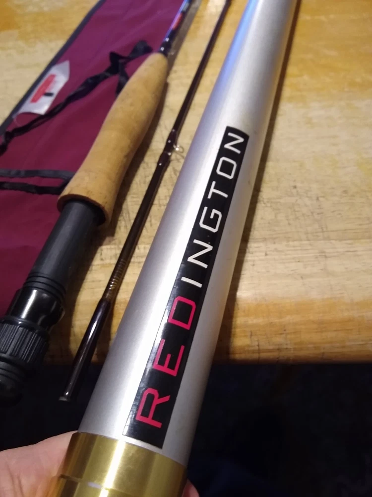 This is a Redington Crosswater CW 805/6 8' 2pc 5/6 Wt Fly Fishing Rod With Redington Sleeve and Tube. The rod is used but in very good condition with some slight darkening of the cork. Otherwise very nice! Please check out the pictures and thanks for shipping. Shipped with USPS Priority or Ground Advantage Mail in light PVC Pipe for safe shipping. Only ship to the USA!