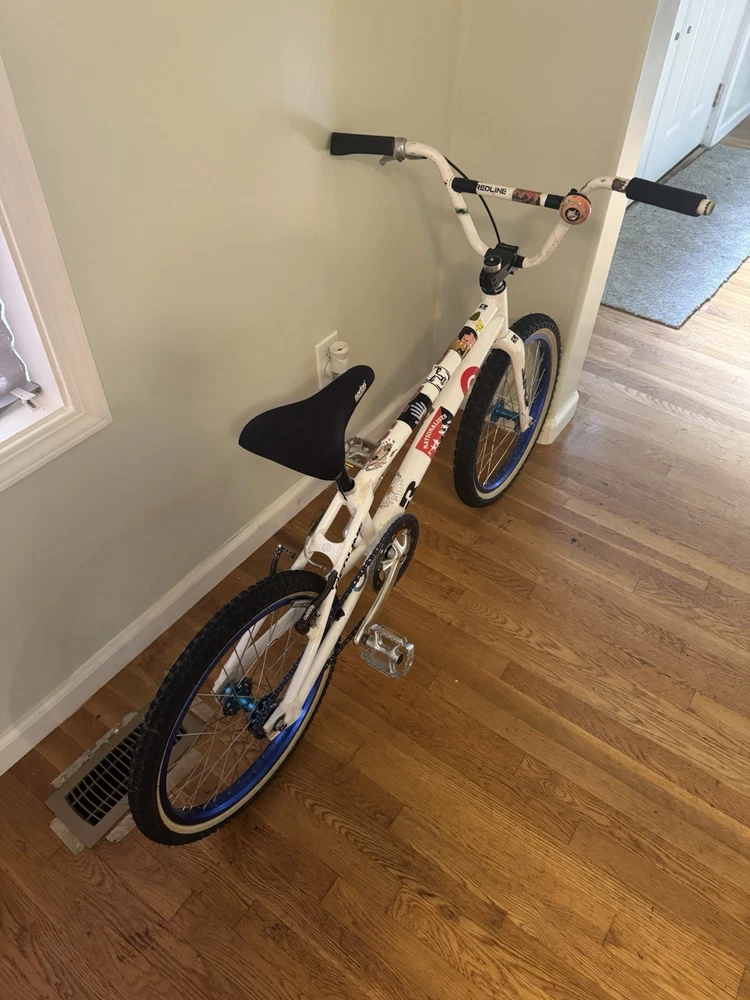 The Redline Proline is a BMX bike made by Redline Bicycles in the United States. It features a 21-inch aluminum frame and 20-inch wheels, Hollow Point handle bar clamp and two piece crank along with Synz Stealth forks. The bike comes in a classic white color and is equipped with Shimano brakes for reliable stopping power. Perfect for enthusiasts looking for a piece of cycling history, this Redline is sure to provide a smooth and enjoyable ride. $ 850 obo. Will except trade for Redline 340 or 440.