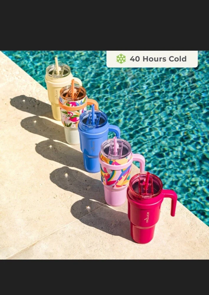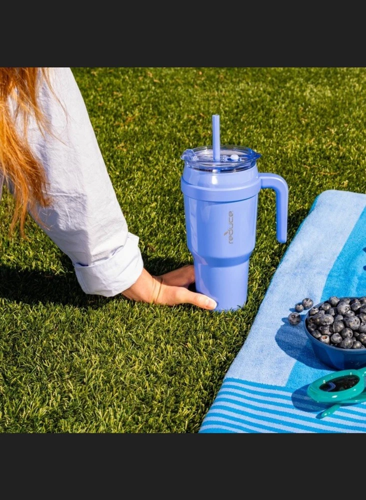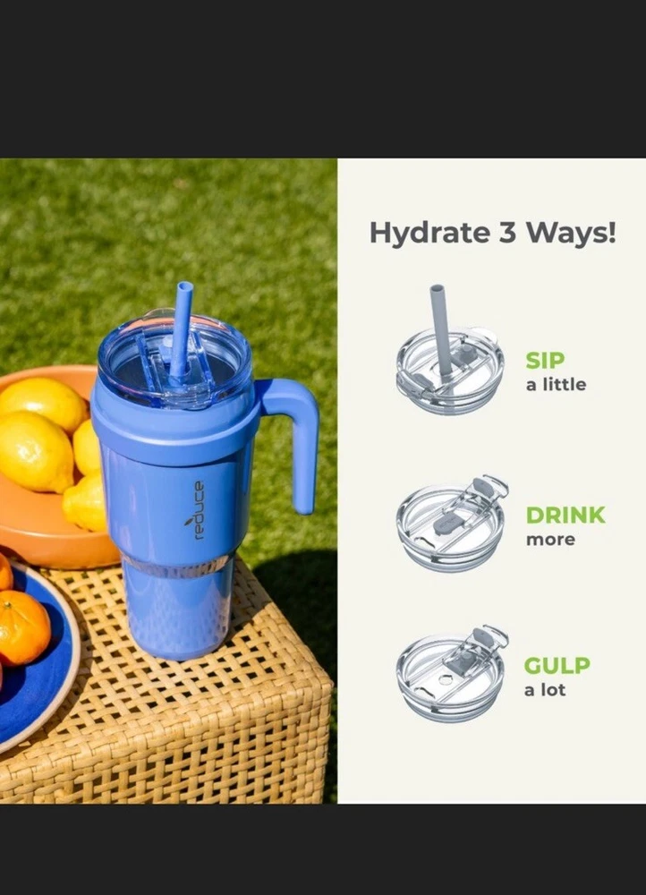 Get a handle on hydration with the Reduce Cold1 stainless steel insulated Mug. This go-anywhere vacuum insulated stainless steel tumbler with handle holds 40 ounces of your favorite drink, keeps cold for up to 40 hours, and now fits even more cupholders so you can stay hydrated with the steel straw even on your busiest days. Easily keep track of hydration with the insulated tumbler thanks to the Cold1's new inner ounce markings—not to mention, the new Soft Sit base keeps your mug (and furniture) lookin’ good and safe from mishaps. With a versatile 3-way lid that lets you sip, drink, or gulp your cold drinks, the Cold1 Mug is your essential hydration companion for wherever your day takes you. This insulated tumbler with straw lid is the perfect way to hit your hydration goals - and is dishwasher safe for quick cleanups. • Includes 40 oz Cold1 tumbler with handle, Sip-It-Your-Way(TM) lid and reusable straw • Patented 3-in-1 lid lets you sip, drink, or gulp! • Dual-wall vacuum insulated, keeps drinks cold for up to 40 hours • Now fits even more cupholders! • New inner ounce markings to track hydration • New Soft Sit(TM) base • Easy to clean, dishwasher safe • 18/8 food-grade stainless steel & BPA free