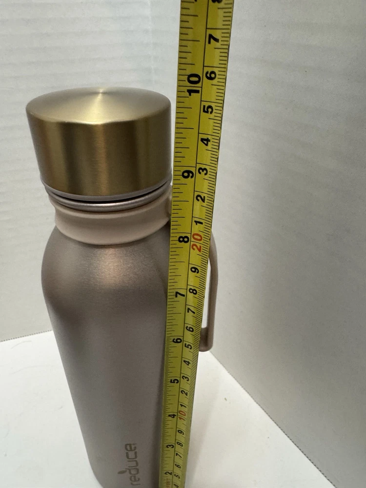 The Reduce Tumbler 20 oz Copper Gold with strap is a stylish stainless steel water bottle with a screw-on lid and a turquoise color. This insulated tumbler features a sporty theme and comes with a 3-piece set that includes the bottle with a strap for easy carrying. With a 20 fl oz capacity and a sleek design, it is the perfect choice for camping, hiking, or other outdoor activities to stay hydrated in style.
