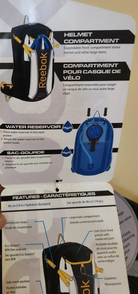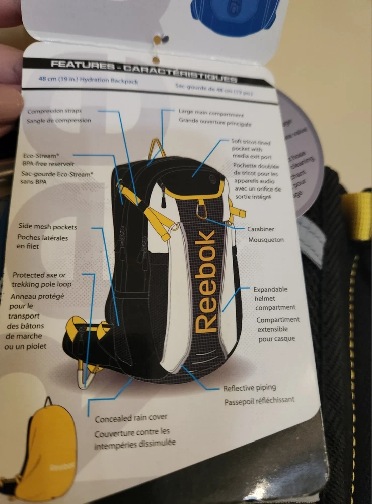 Experience the practical design and versatility of the Reebok 2L Hydration Backpack, ideal for cyclists, outdoor enthusiasts and hikers alike. Crafted by a brand synonymous with durability and quality, this hydration backpack features adjustable straps for a secure fit and easy access to essentials. Whether you're scaling peaks or exploring trails, this Reebok backpack is a reliable companion for your adventures. Bag is unused and nwt Shipping will be $25 in Canada and $27 to USA Please message with any questions Thanks for looking