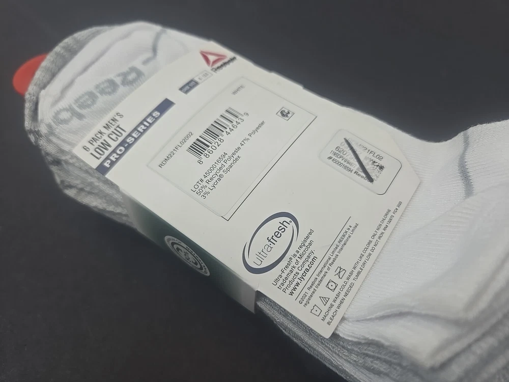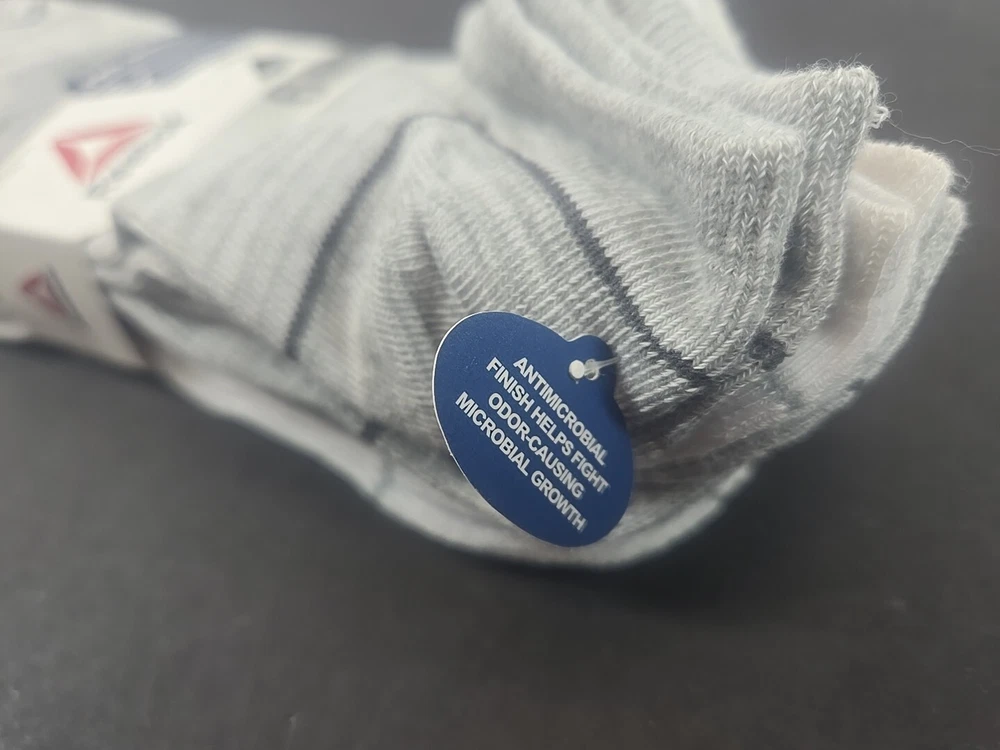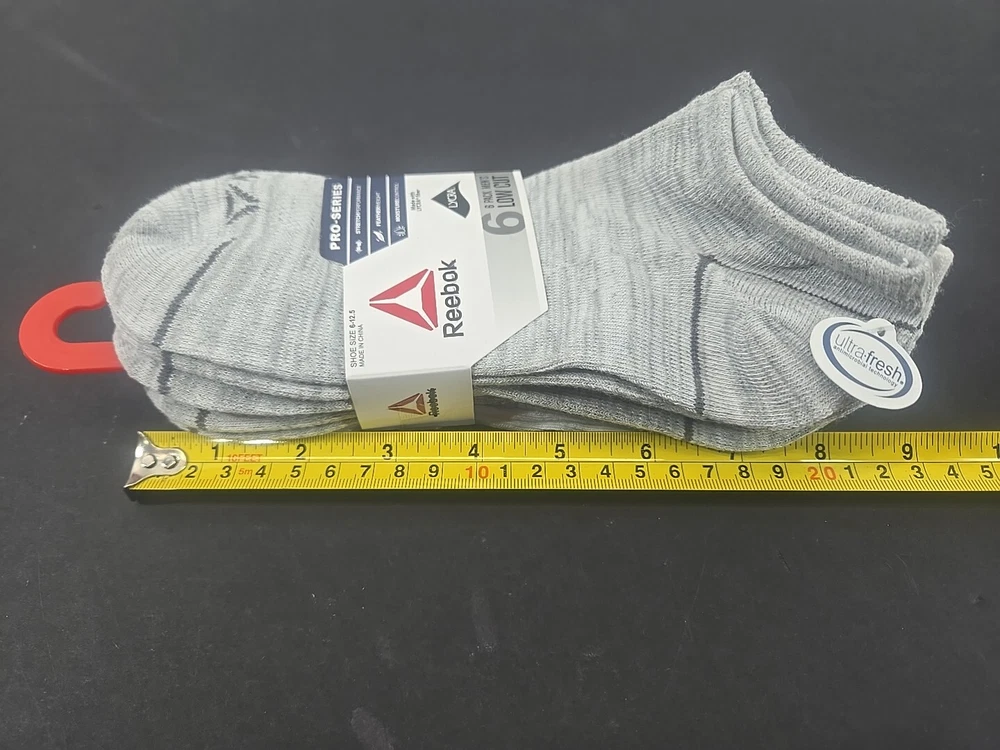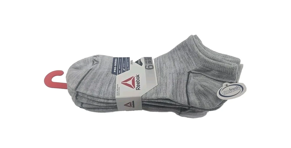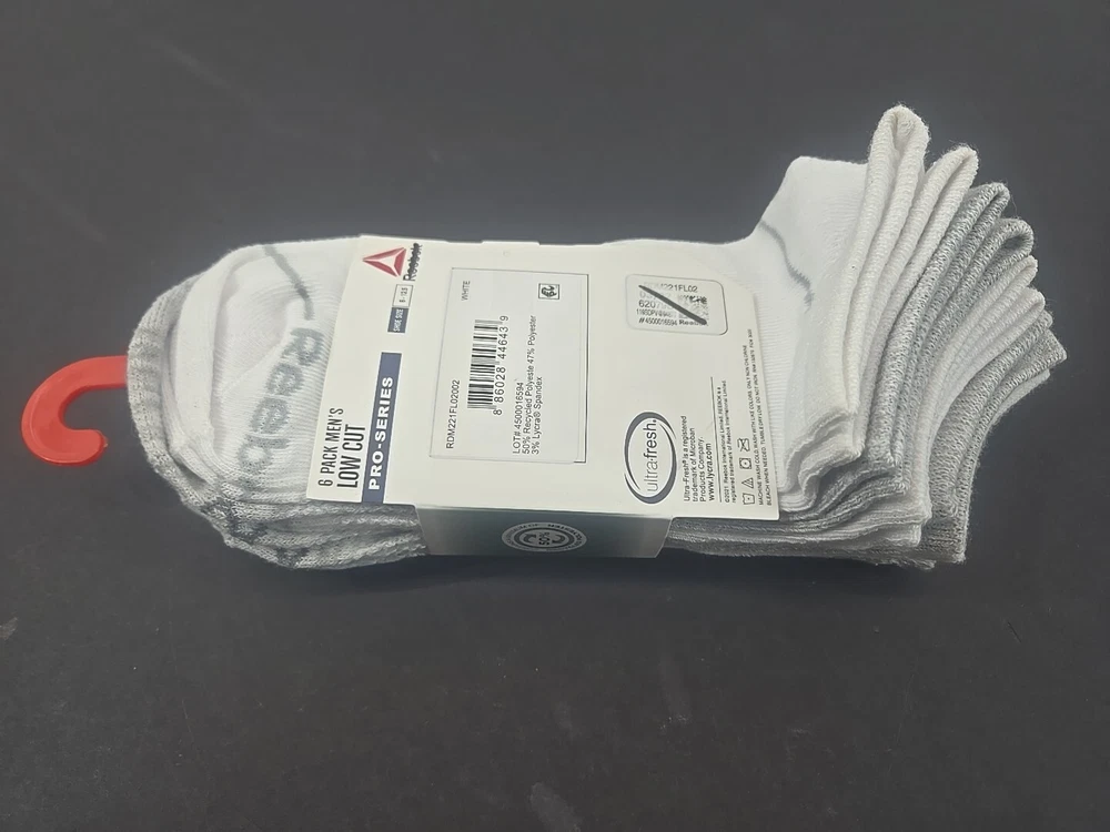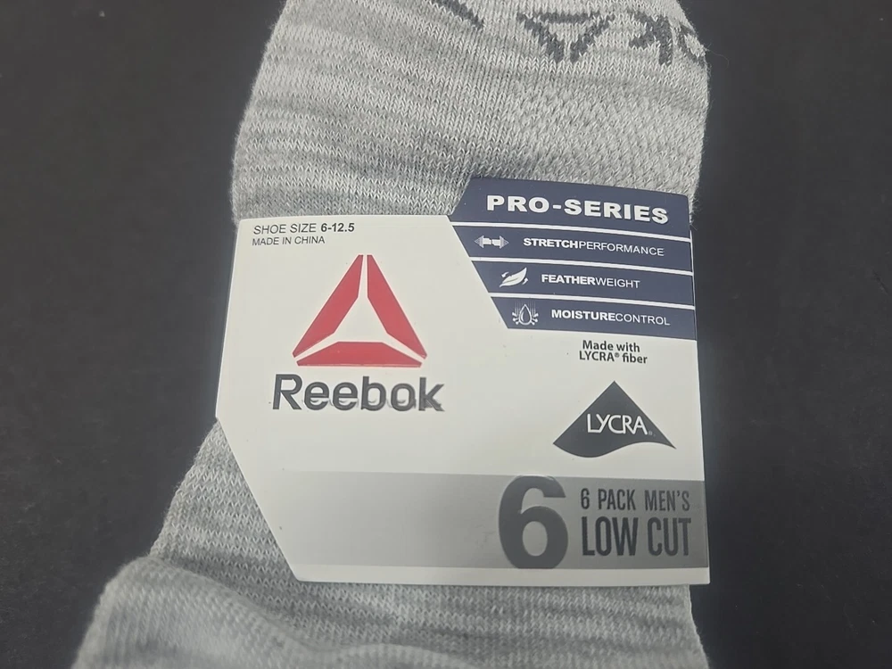 Reebok 6 Pack Mens Low Cut Socks Pro-Series Grey White Lycra Size 6 - 12.5 Shoe