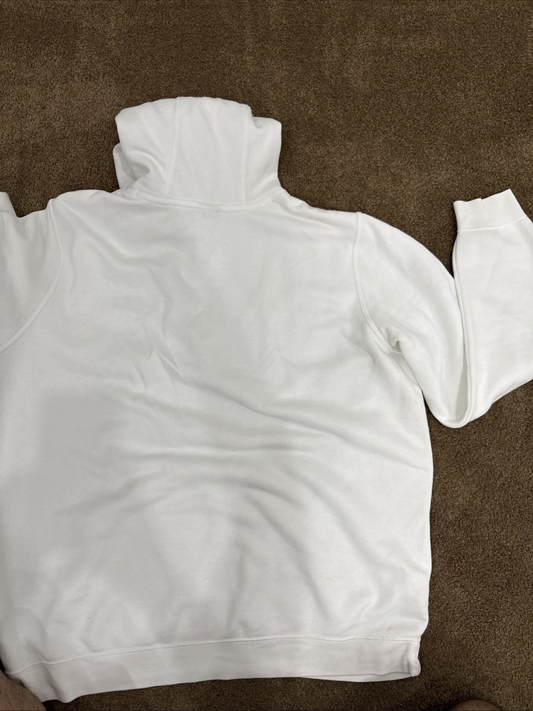 The Reebok Classic Hoodie in Men's size XXL is a white sweatshirt hoodie made of polyester fleece material for comfort and warmth. This pullover hoodie features a solid pattern, long sleeves, a drawstring closure, and a high neck neckline. It also includes a logo accent, hood, pockets, and is suitable for all seasons, making it ideal for various activities such as gym training, walking, and running. With a classic and sporty theme, this hoodie is a versatile piece for outdoor wear in different seasons.