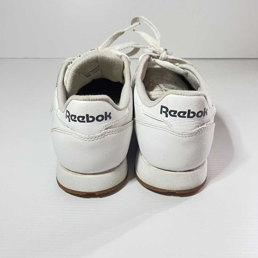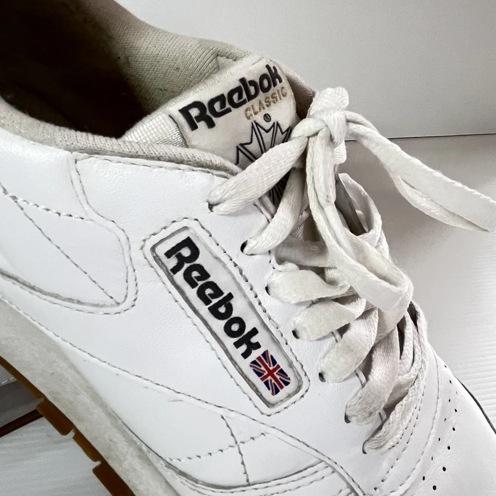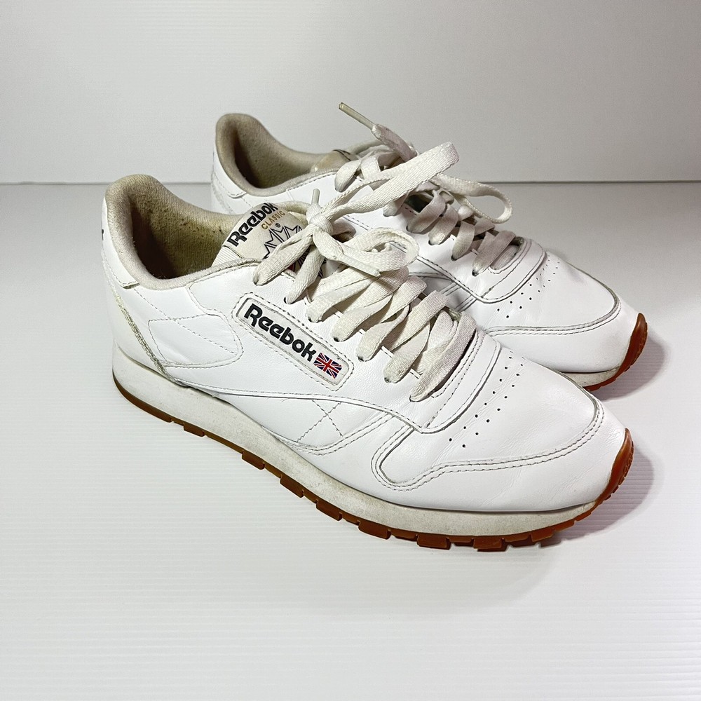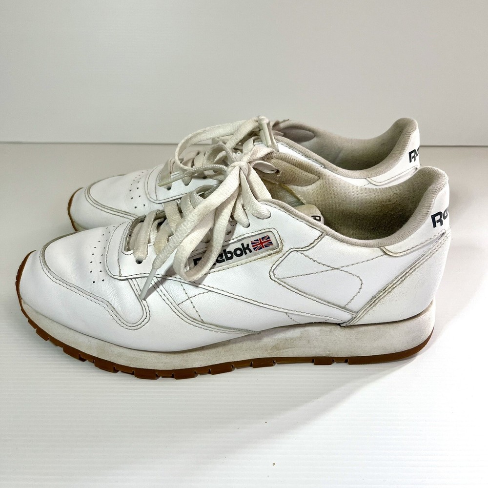Step up your sneaker game with these pre-owned Reebok Classics Leather Athletic Shoes in intense white gum. Designed for unisex adults, these sneakers boast a UK shoe size of 6, a US shoe size of 7, and an EU shoe size of 39. The upper material is made of durable leather, ensuring both comfort and style. ———— Please see photos for condition. Also see measurements if applicable. Check out my other listings! All clothing have been washed and cleaned. All items are sent by tracked mail Vintage / secondhand items possibly show signs of age. See images for any wear, fading, stains, holes, marks or damage.