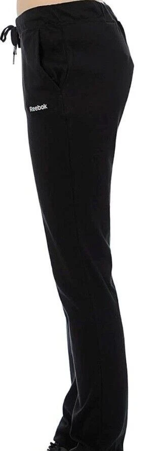 Size: M Type: Sports Pants Style: Activewear Trousers Closure: Drawstring MPN: B86730 Product Line: Elements Jersey Pants Brand: Reebok Pattern: Solid colour / Patternless Department: Women Size Type: Regular Features: Adjustable Waist, Elastic Waist, Drawstring Fit: Regular Occasion: Activewear, Casual, Travel Colour: Black Season: Autumn, Spring, Summer Performance/Activity: Gym & Training, Pilates, Running & Jogging, Walking, Yoga Material: 65% Cotton, 21% Polyester, 14% Viscose