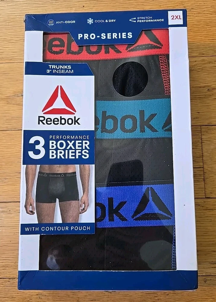 Elevate your athletic performance with the Reebok Men's 3 Pack Performance Boxer Briefs Trunks. These classic and colorful boxers feature a solid pattern with a contour pouch character design. Made with a blend of 10% spandex and 90% Polyester jersey fabric, they are machine washable and suitable for all seasons. The elasticized waist and stretchy material provide a comfortable fit, while the breathable design ensures optimal comfort. Perfect for any sports activity, these boxer briefs come in a 2XL size and are a must-have addition to any men's clothing collection.