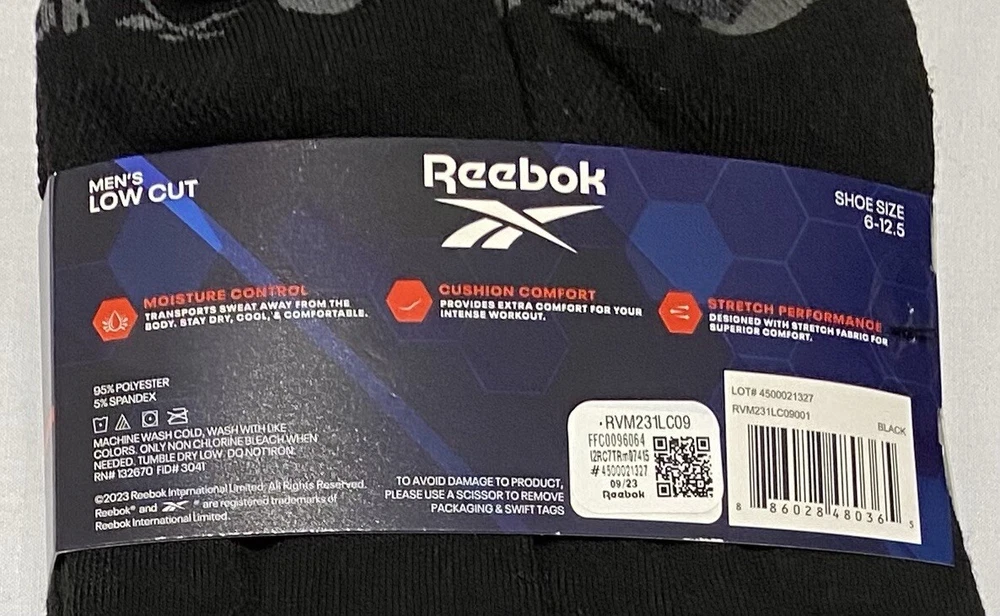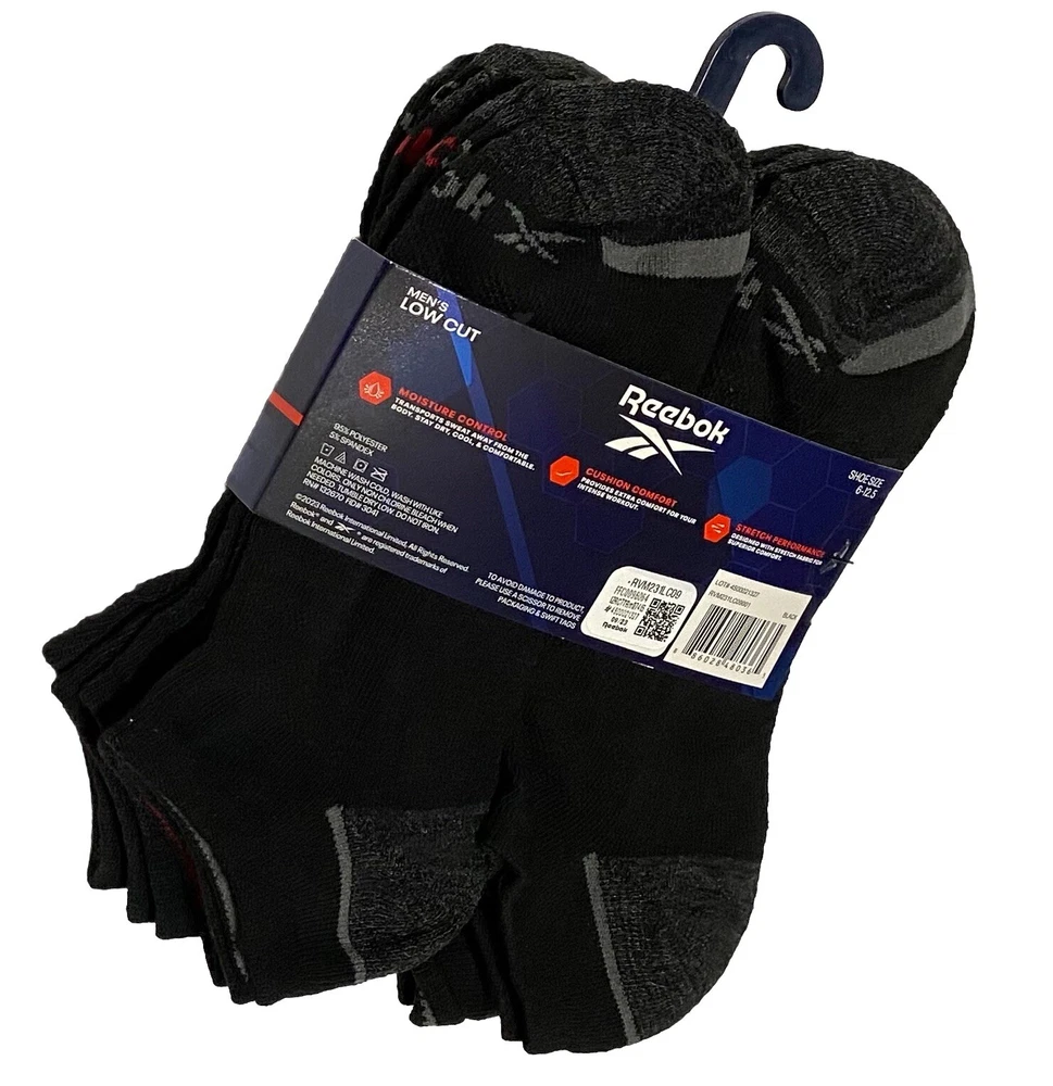 Reebok Performance 6-Pairs Men's Low Cut Socks Black/Gray/Red 95% Polyester 5% Spandex Sock Size: 10-13 fits Shoe Size: 6-12