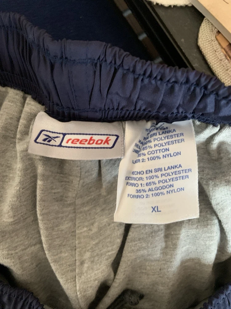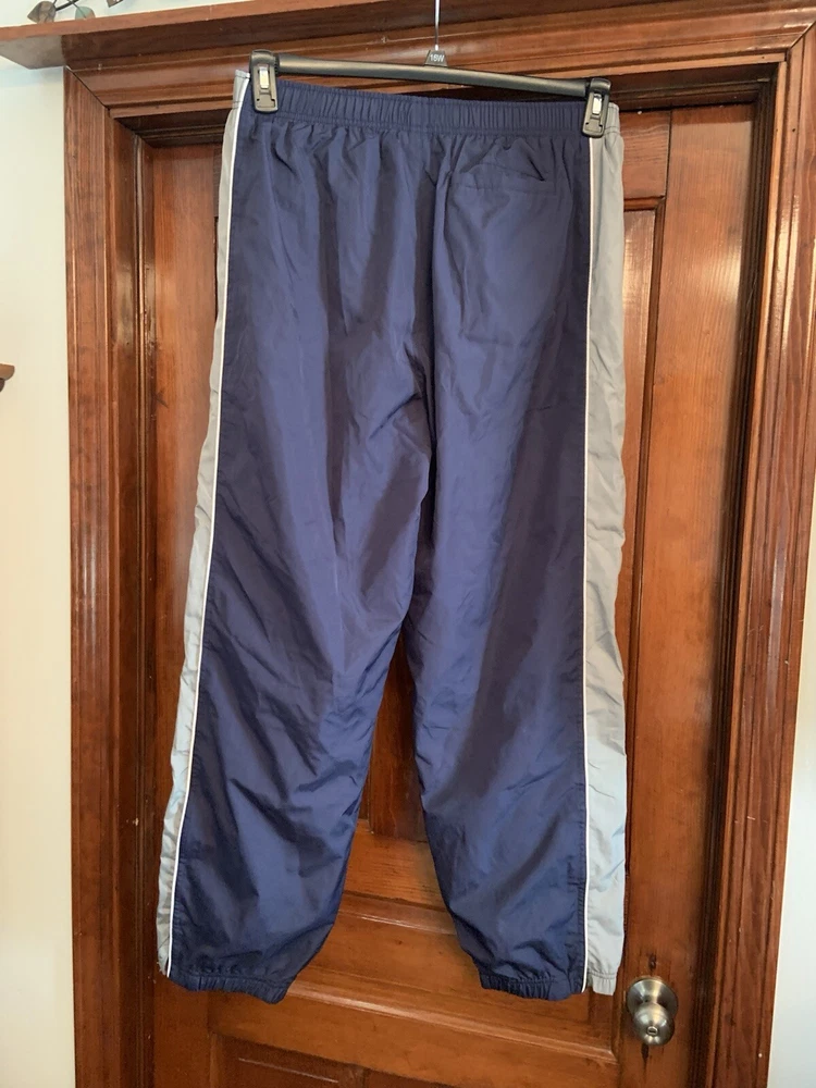 Reebok Men’s Nylon Lined Track Pants Size XL Navy With Grey Stripe. Grey Lining.