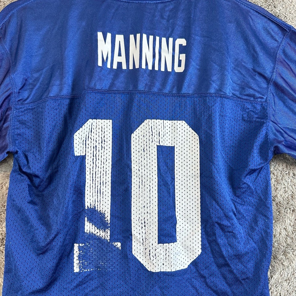 Reebok NFL NY Giants Eli Manning 10 Mesh Football Jersey Shirt Boys Youth L Large Youth size large, approximate measurements in photos. Wear to white letters/numbers but otherwise great shape. See photos.