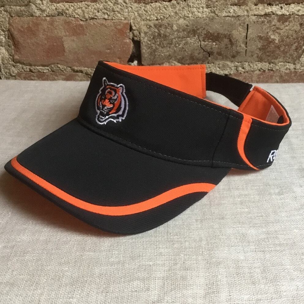 Show off your Bengals pride with this Reebok Onfield visor. Perfect for game day or everyday wear, this unisex adult hat features the iconic Bengals logo. The one-size-fits-all design ensures a perfect fit for all fans. Adjustable strap back. This officially licensed NFL football apparel is perfect for any fan looking to add to their collection. Pre-owned in excellent, clean condition!