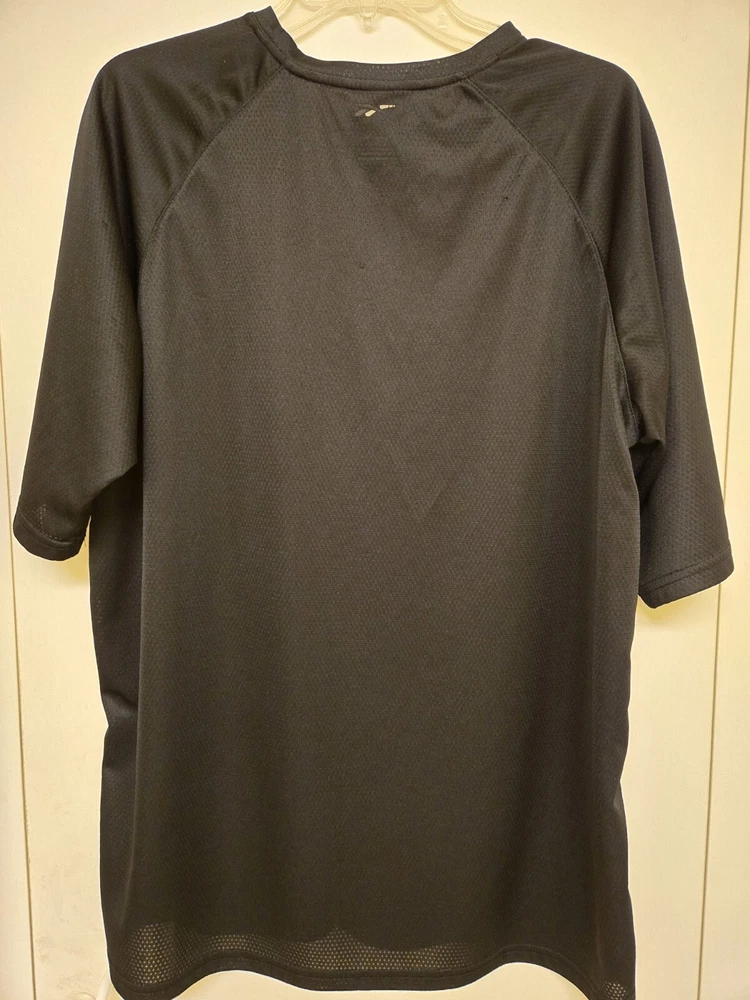 Elevate your golf game with this Reebok Play Dry Golf Tech Textured Wicking activewear top. Designed for men who love to stay active, these tops are perfect for your golfing needs. The black color with white accents provides a stylish look that will surely make heads turn on the golf course. Made by Reebok, a trusted brand in the world of activewear, these tops are guaranteed to provide the comfort and performance you need. The Play Dry technology ensures that you stay dry and comfortable throughout your game, while the textured design provides excellent grip and control. Perfect for any occasion, these Reebok Play Dry Golf Tech Textured Wicking activewear tops are a must-have for any golf enthusiast. Some of the letters from Reebok are coming off. Washed per eBay standards.