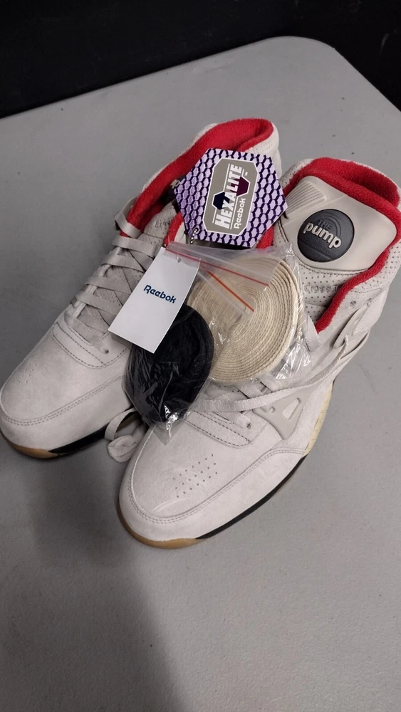 don't miss out on this limited edition one of 200 in the world Reebok pump Bodega Terry blay addition the sneakers come to you complete with coffee mug accessory pack and stickers from original release day sneakers also include two pairs of shoelaces and our dead stock brand new with tags you will not be able to get these anywhere else again these are limited 200 pairs in the world please take a look at my other items available I offer fast and friendly shipping thank you