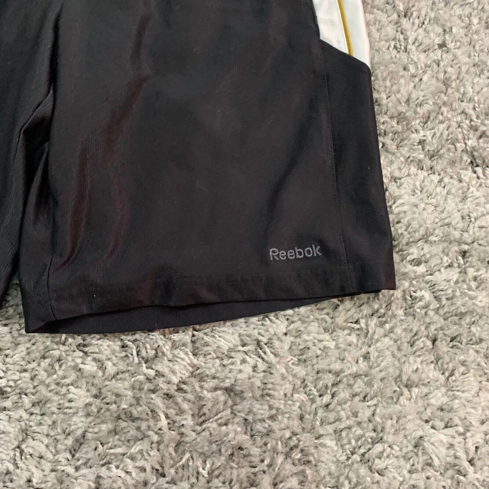 Waist Size: 32 in Color: Black Size Type: Regular Style: Athletic Department: Men Brand: Reebok Performance/Activity: Basketball Inseam: 9 in Theme: Sports Features: Elastic Waist Size: s Fit: Athletic Occasion: Activewear Material: Polyester Blend