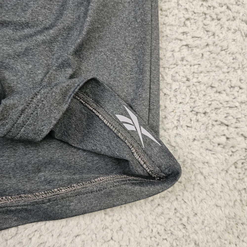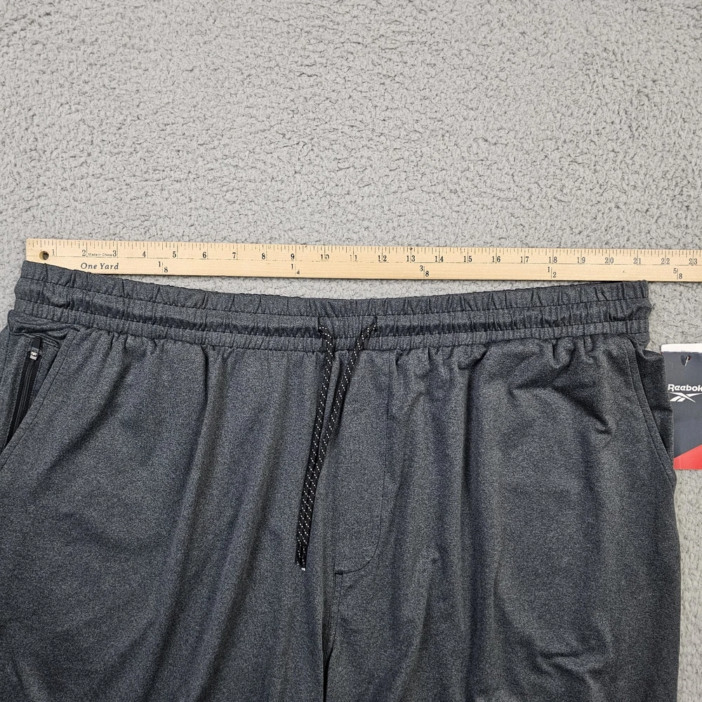 Handmade: No Closure: Drawstring Color: Gray Features: Drawstring Personalize: No Department: Men Occasion: Activewear Vintage: No Pattern: Solid Size Type: Regular Style: Athletic Performance/Activity: Gym & Training Brand: Reebok Product Line: Reebok Season: Summer, Spring Inseam: 7 in Fit: Regular Waist Size: 42 in Size: 2XL Compression Area: Waist Garment Care: Machine Washable Material: Polyester, Polyester Blend, Spandex