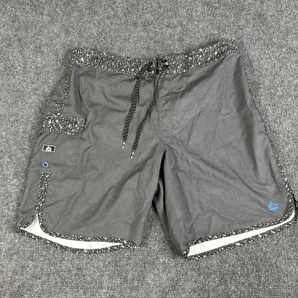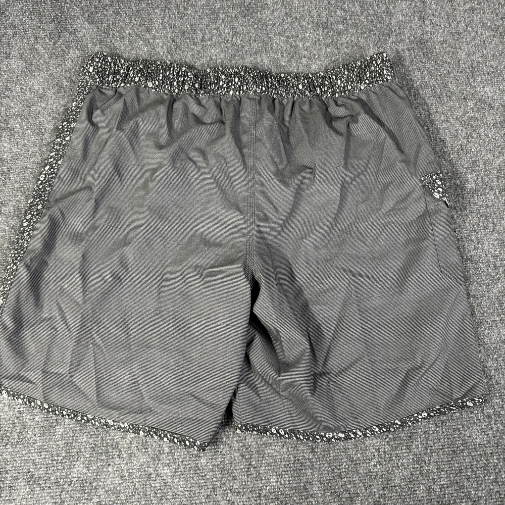 Reebok Shorts Mens Large Gray Black Striped Beach Swim Trunks Board Shorts