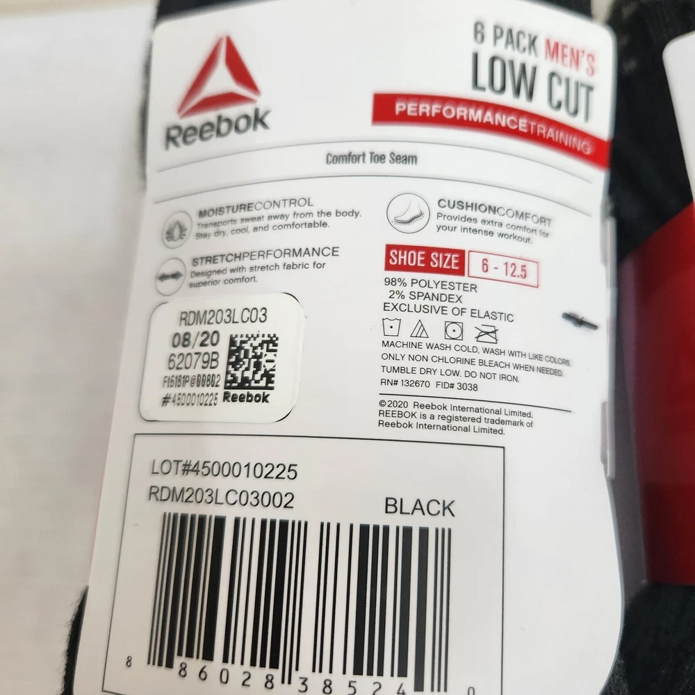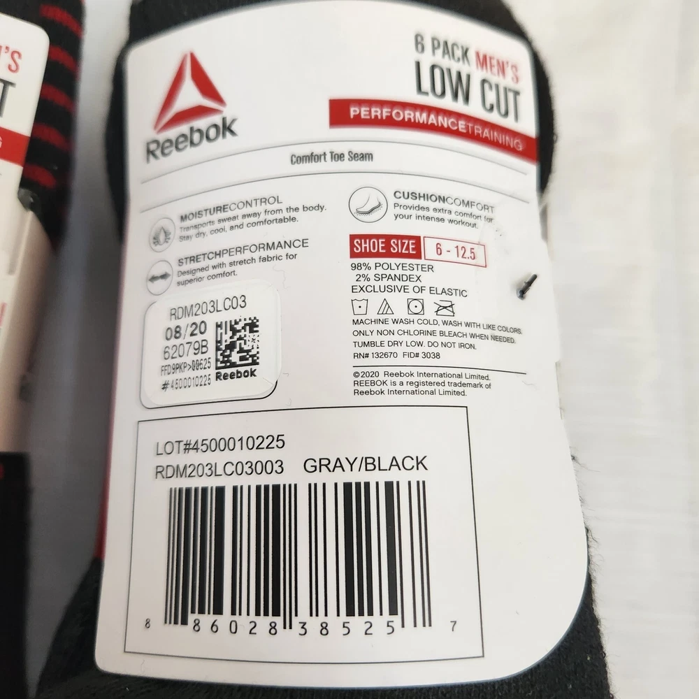 Reebok Socks Mens 6-12.5 Performance Training Low Cut Black/Red & Gray 2 6-Packs - NEW with Tags - Contains 2 - 6 Pack Reebok Mens Performance Training Low Cut Socks Black /w Red & Black /w Gray - Style Profile - Stretch, Moisture Control, Dry, Cool, Comfortable, Cushion, Comfort, Workout, Gym, Sports, Active - Returns acceptable within 30 days of purchase unopened in original packaging