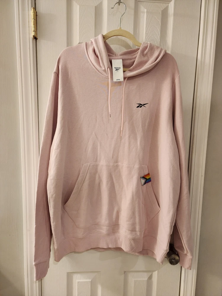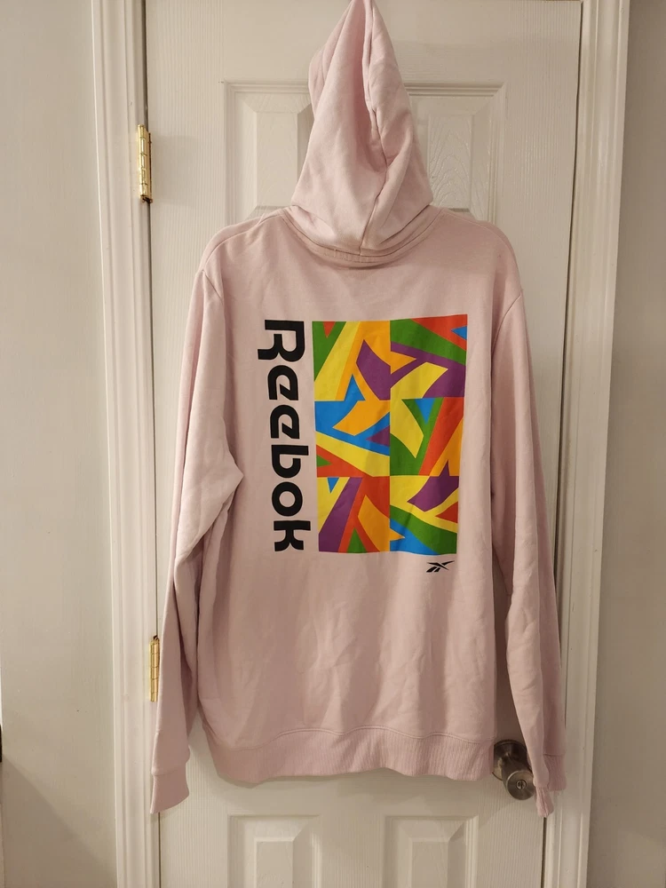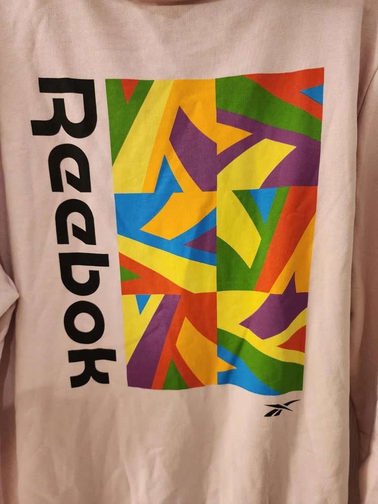 Reebok Tech Style Pride Graphic Sz XL Pink Sweatshirt Athletic Hoodie
