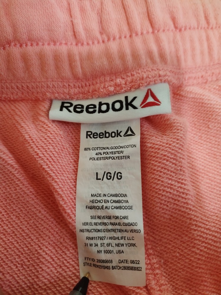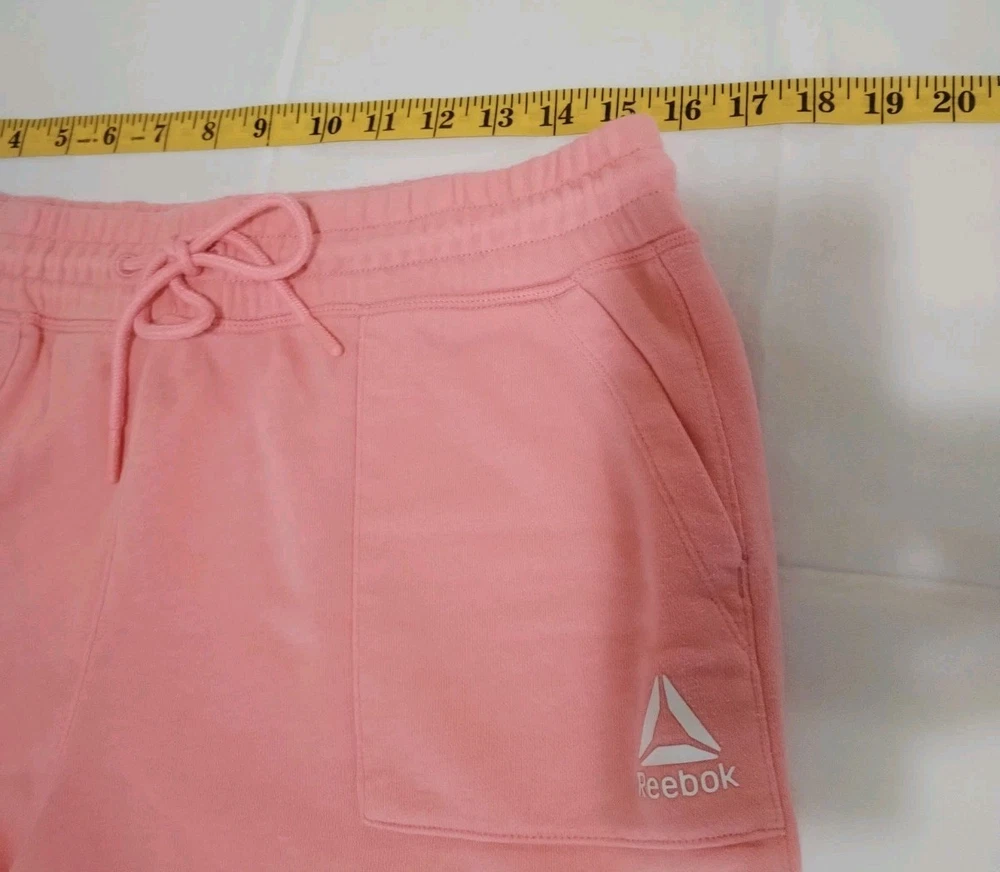 Closure: Drawstring Size Type: Regular Pattern: Solid Department: Women Fabric Type: Blended Fabric Size: L Brand: Reebok Material: Cotton, Polyester Occasion: Activewear Features: Elastic Waist, Pockets, Drawstring Style: Athletic Color: Pink Performance/Activity: Gym & Training Fit: Regular