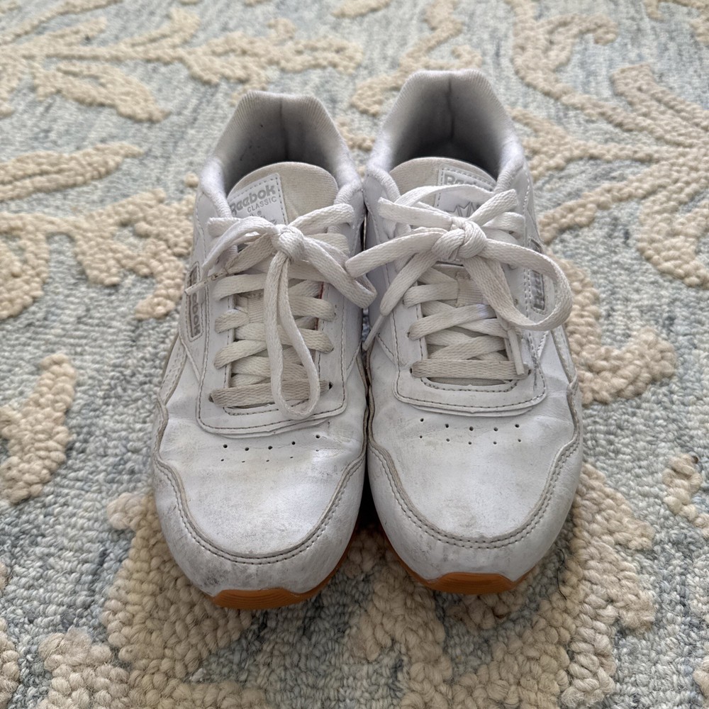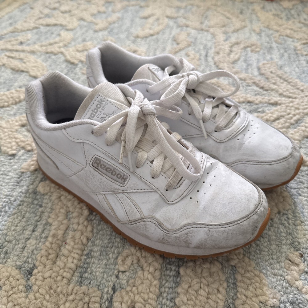 Elevate your sneaker collection with these stylish Reebok Classic Harman Run sneakers. The white leather upper material is complemented by steel accents and gum outsoles, creating a sleek and timeless design. These sneakers are perfect for casual wear, with a comfortable and breathable Ortholite insole, cushioned lining, and a lace-up closure for a secure fit. The solid pattern and classic theme make these shoes a versatile addition to any wardrobe, suitable for all ages and departments.