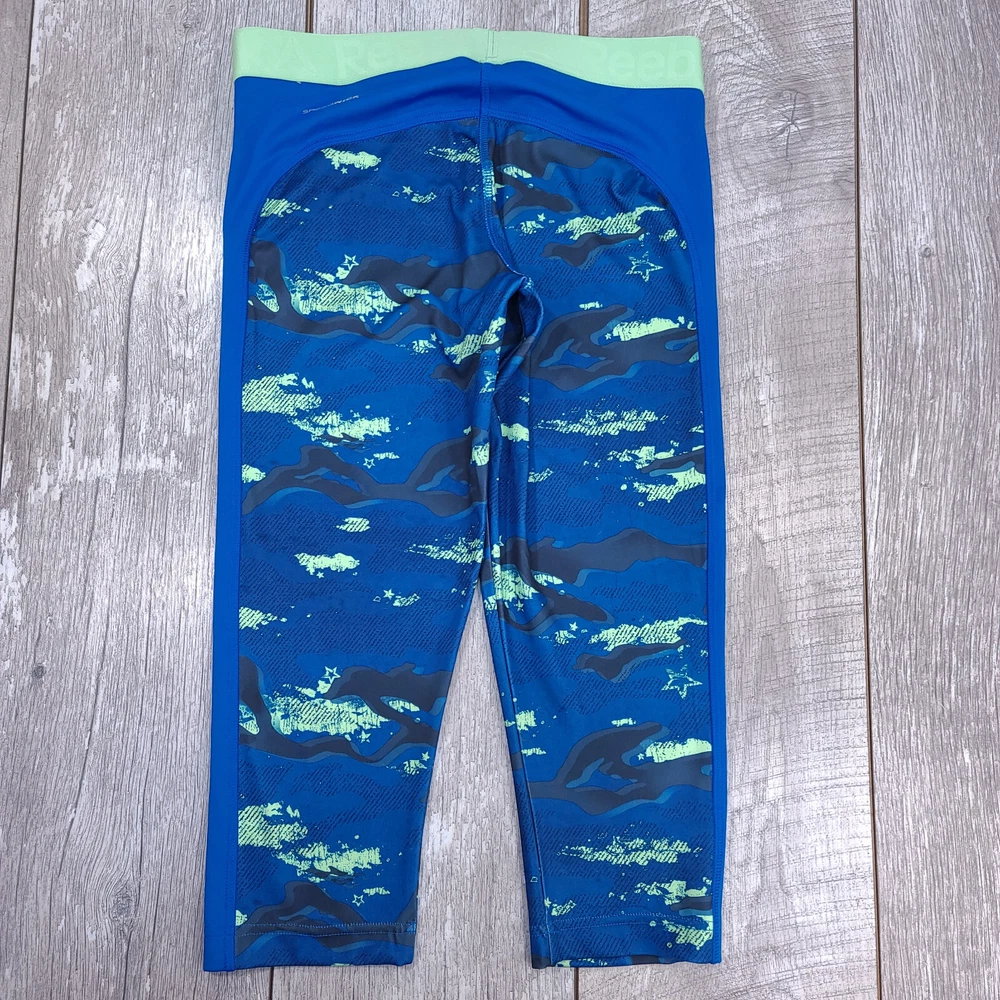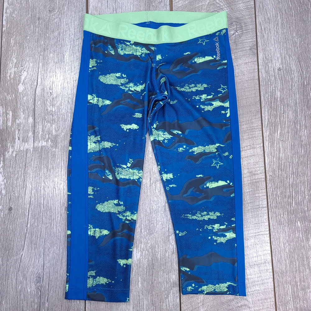 Pattern: Camouflage Occasion: Travel, Casual, Activewear Fit: Athletic Country/Region of Manufacture: Philippines Fabric Type: Mesh Seller Notes: “Excellent Pre-Owned Condition.” Features: Breathable, Easy Care, Elastic Waist, Lightweight, Moisture Wicking, Quick Dry, Stretch Compression Area: Leg, Thigh, Waist Color: Blue Theme: Athleisure, Sports, Sportswear, Performance, Fitness Brand: Reebok Material: Polyester Blend Garment Care: Machine Washable Season: Fall, Spring, Summer Personalize: No Performance/Activity: Gym & Training, Hiking, Running & Jogging, Walking Leg Style: Straight Size Type: Regular Size: S Waist Size: 28 in Department: Women Product Line: Reebok CrossFit Closure: Pull On Handmade: No Inseam: 20 in Type: Leggings Style: Capri