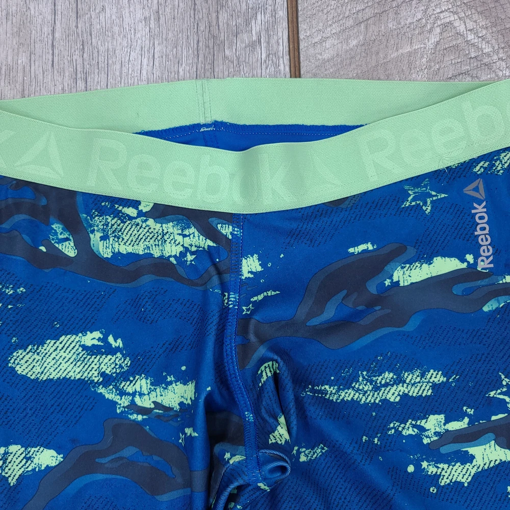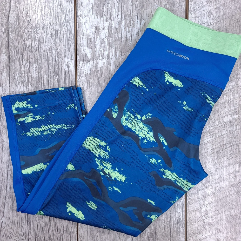 Reebok Womens Speedwick Running Tights Size Small Blue Camouflage Capri Work Out
