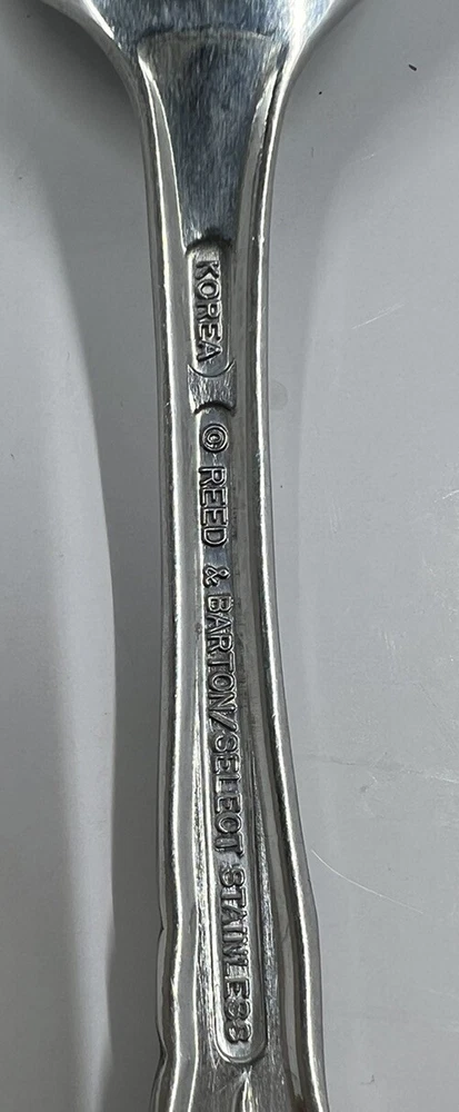 UPC: Does not apply Handle Material: Stainless Steel Manufacturer Warranty: None Brand: Reed & Barton gtin13: Does not apply Department: Adults Material: Stainless Steel Wood Tone: None Occasion: Any Type: Soup Spoon Finish: Glossy Style: Traditional Color: Silver Character: None Handle Pattern: Floral Item Length: 7 Character Family: None Country/Region of Manufacture: Korea, Republic of Set Includes: Soup Spoon