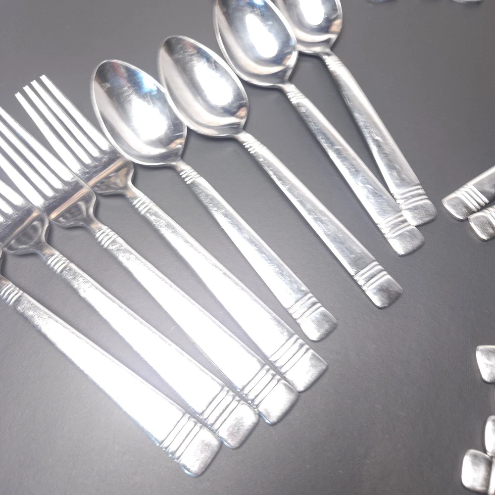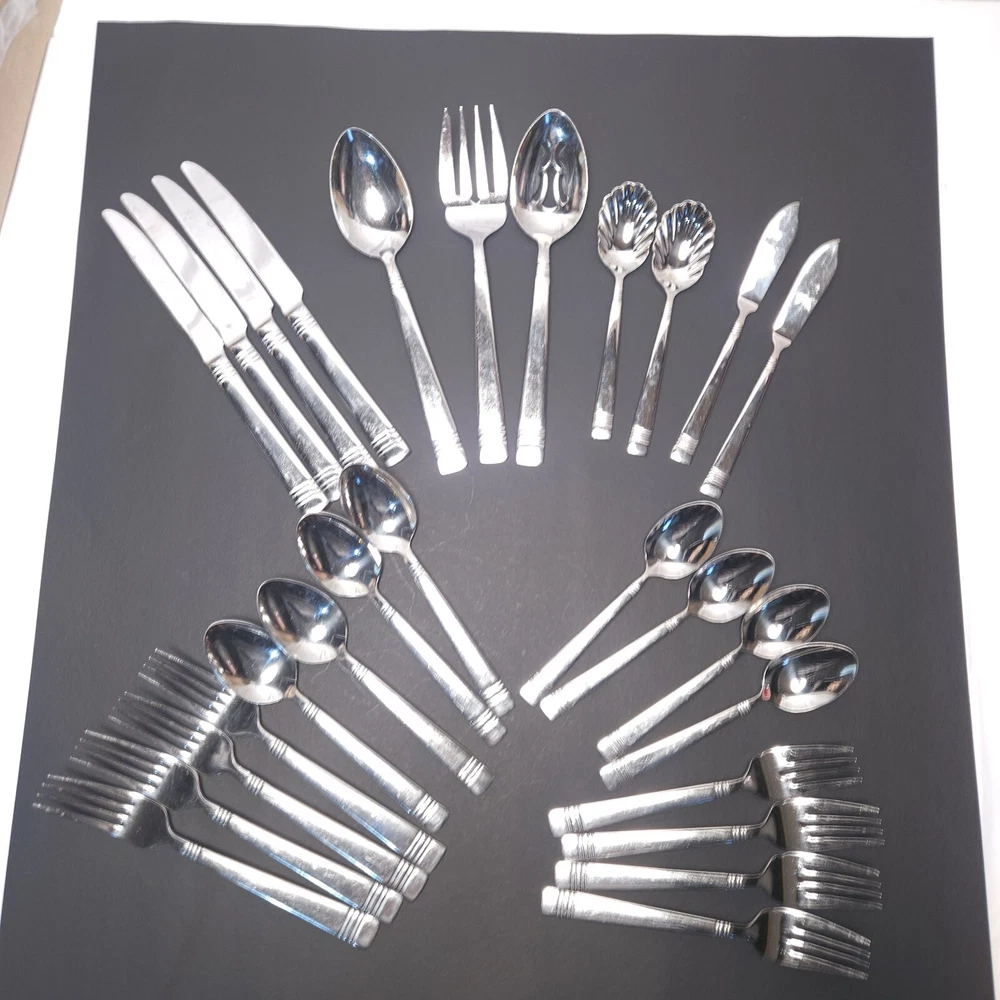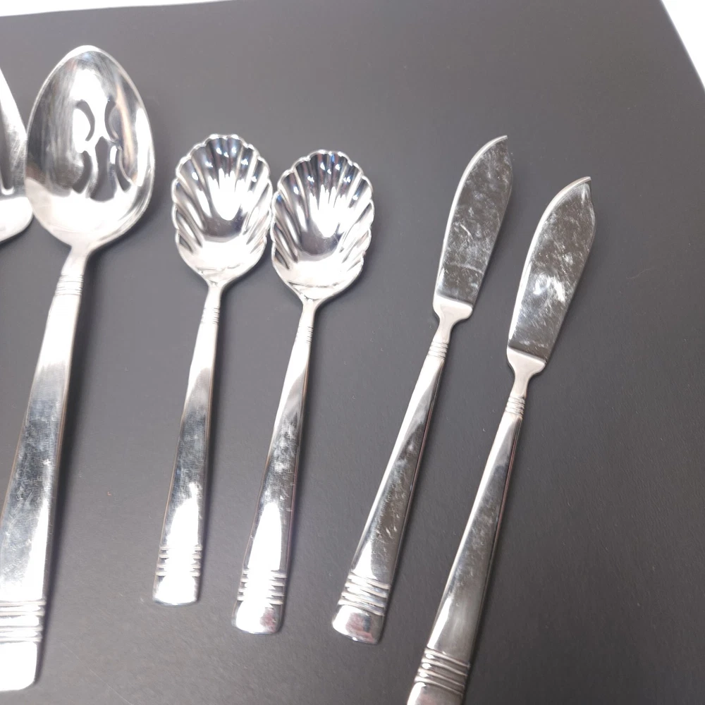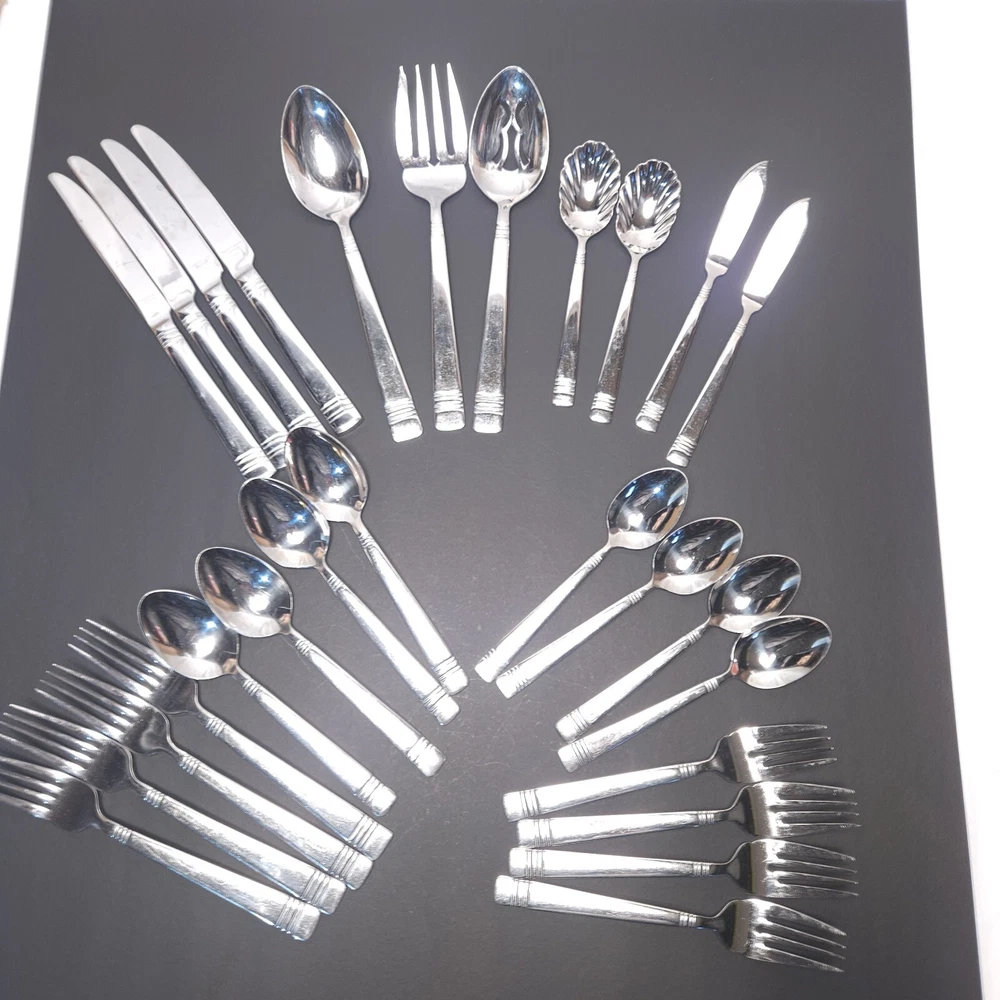 Set Of 27 4 place settings Serving set, butter pat knives All seen in photos! See photos for description and condition and pieces
