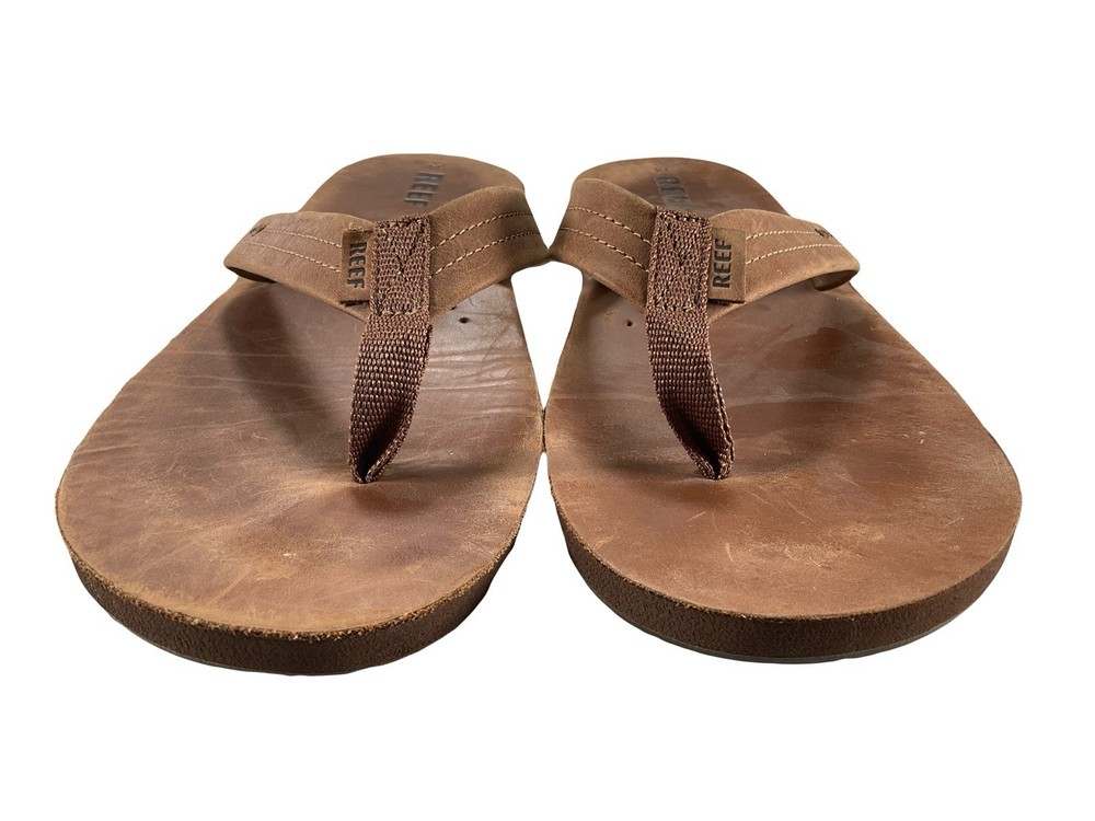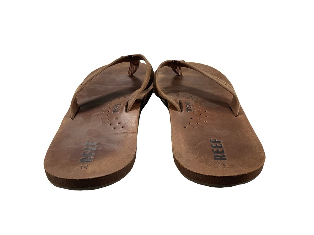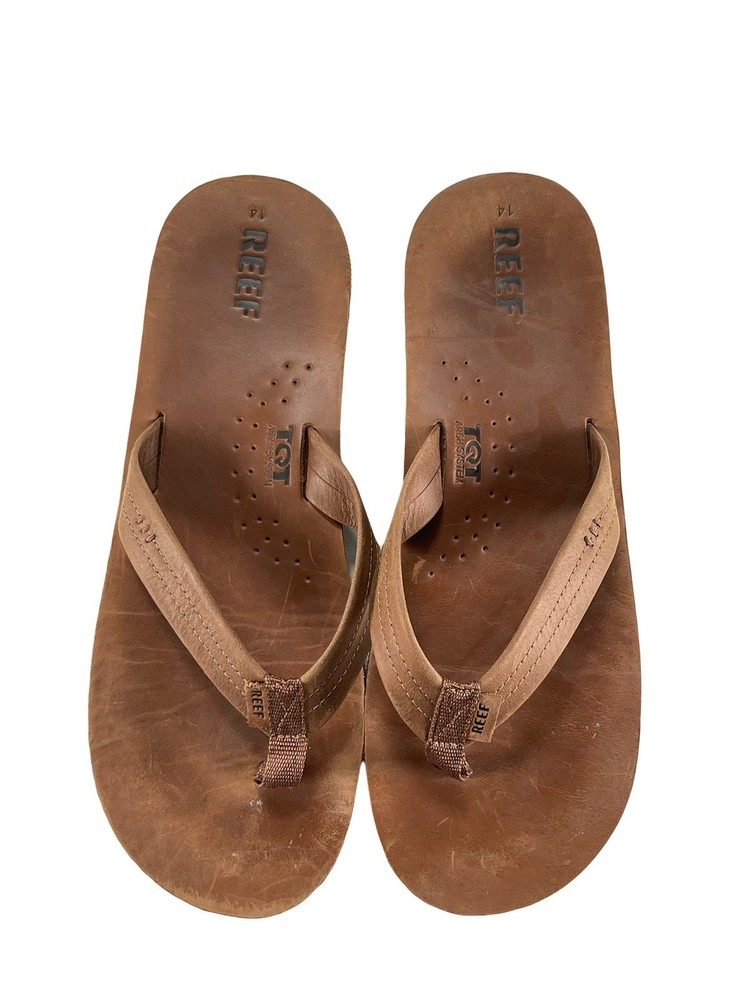 Reef Draftsmen Leather Flip Flops Sandals Bronze Brown Bottle Opener Men's 14