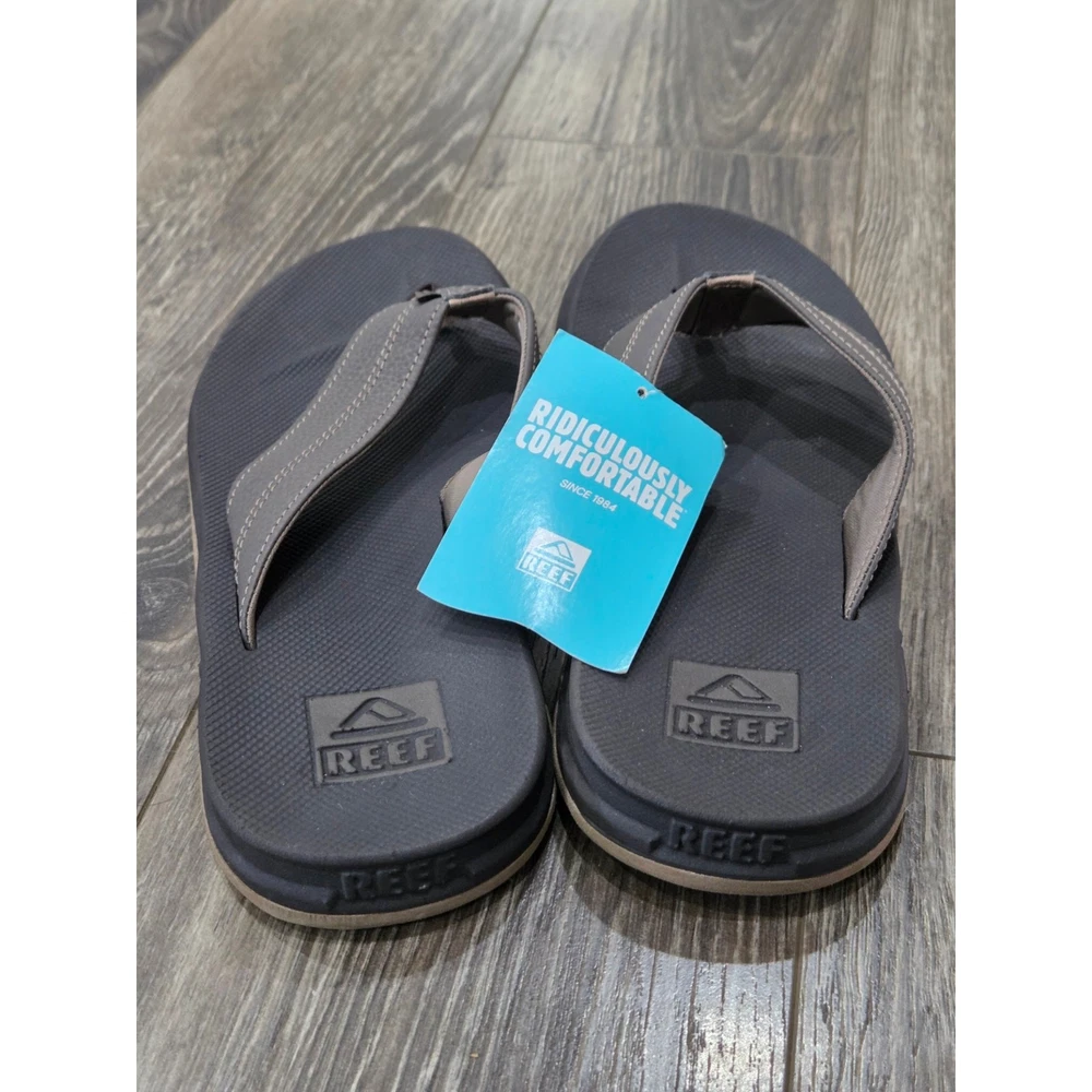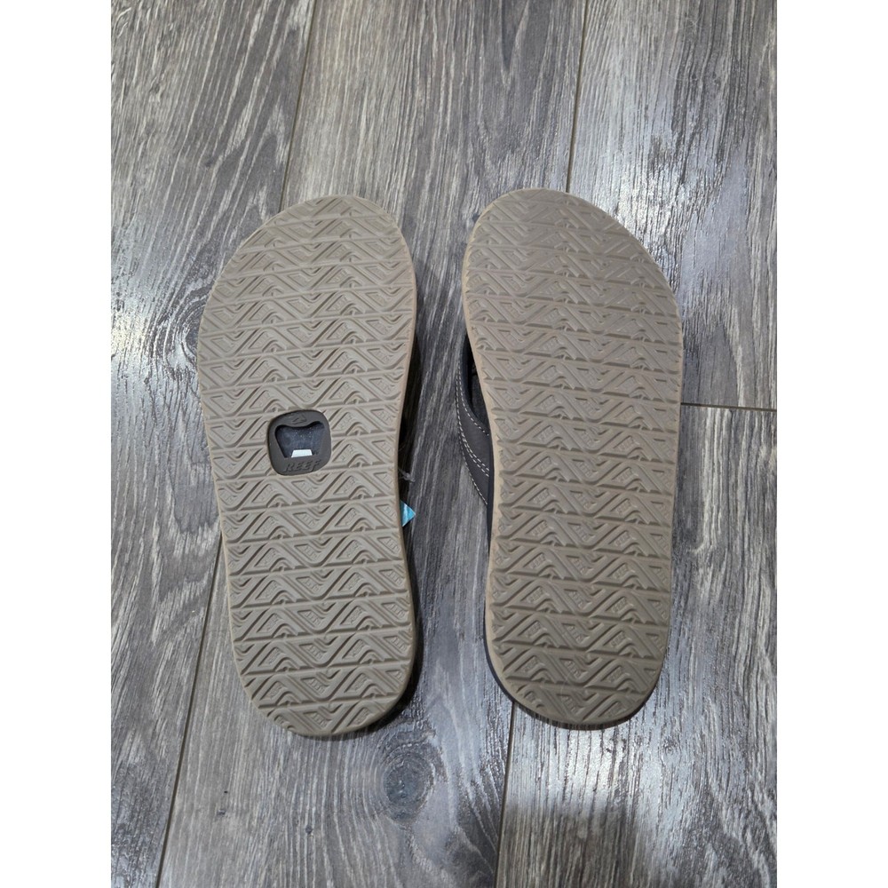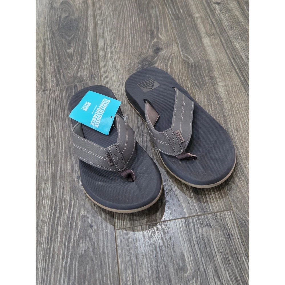 Department: Men US Shoe Size: 10 Theme: beach, vacation, casual, resort Style: Flip Flop Features: Breathable, Comfort, Cushioned Pattern: Solid Upper Material: Synthetic Closure: Slip On Brand: Reef Handmade: No Occasion: Casual, Travel Type: Sandal Vintage: No Color: Brown Accents: Logo Season: Spring, Summer