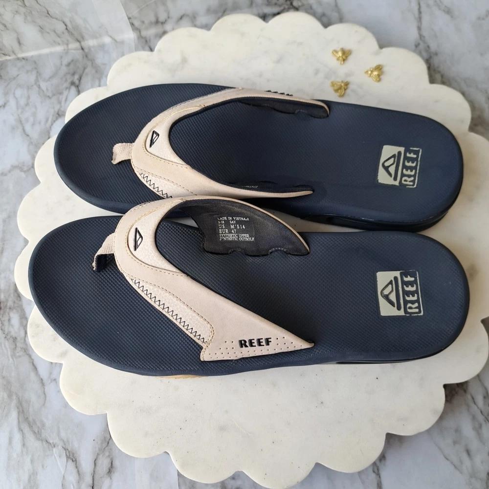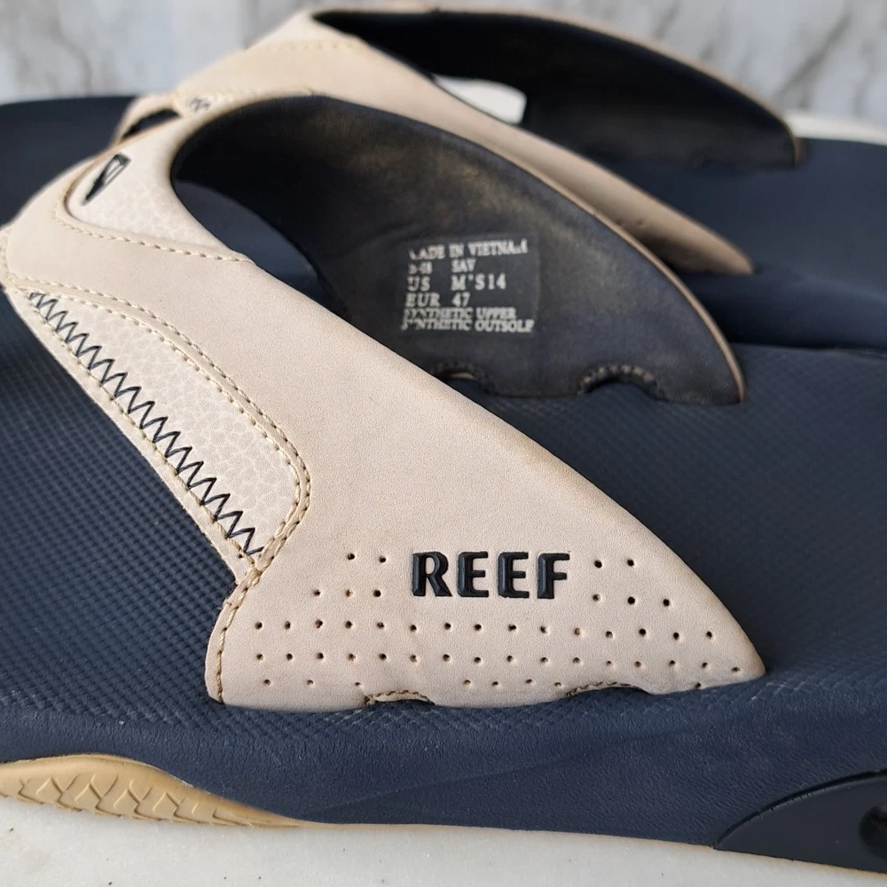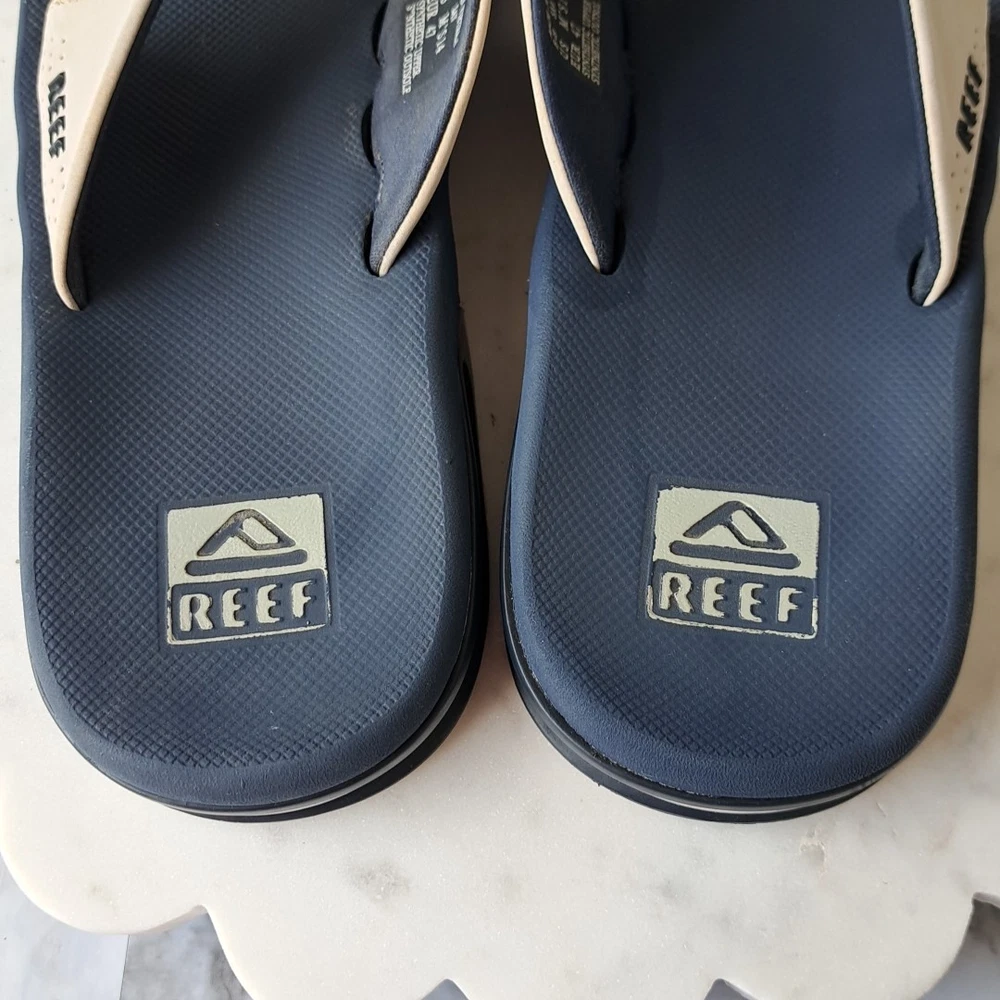 Reef Men's Slip-On Sandals Size 14 Gray/Navy Blue Synthetic *Brand - Reef *Men's Slip-On Sandals Synthetic *Color - Gray/Navy Blue *Size - 14 *Condition - Good (Pre-Owned) (Please check the pictures from above to see the condition of the shoes.) *Please see all the photos in Zoom to appreciate the details. (Please check for all the sizes on some of the pictures from above) (The color may vary due to the lighting in the photographs.) *I described this product the best way possible. *If you have any questions, please let me know.