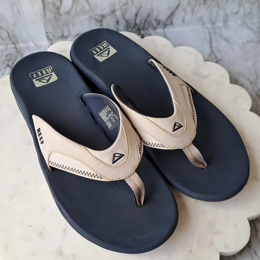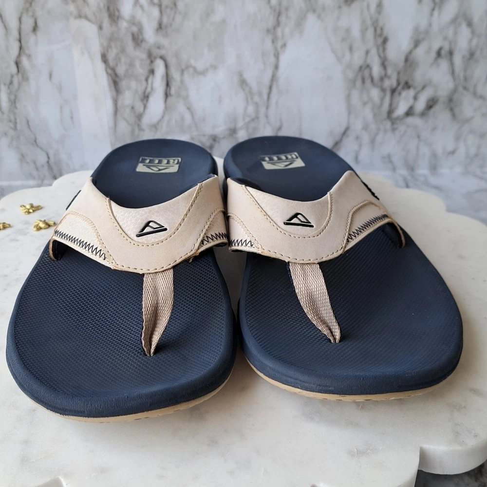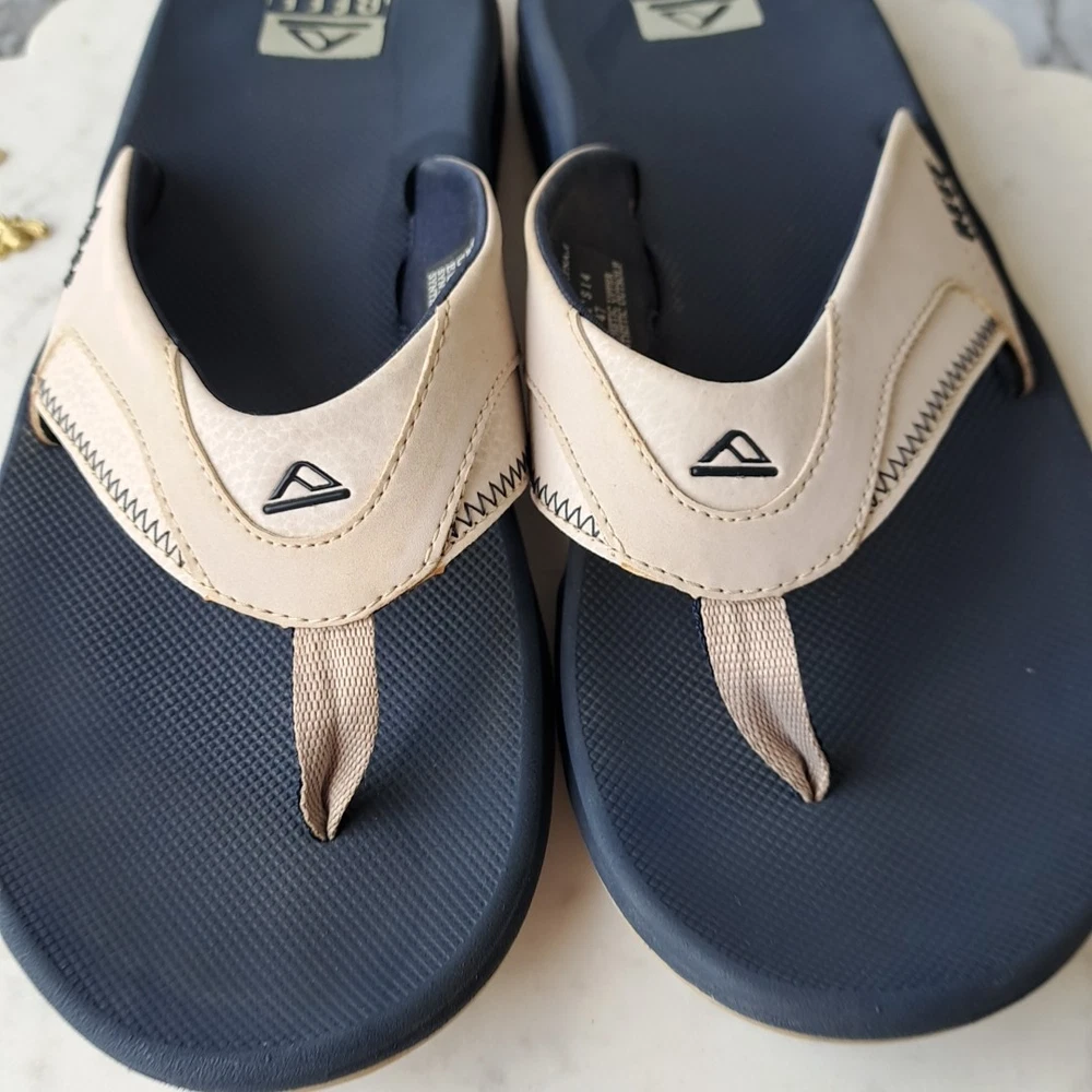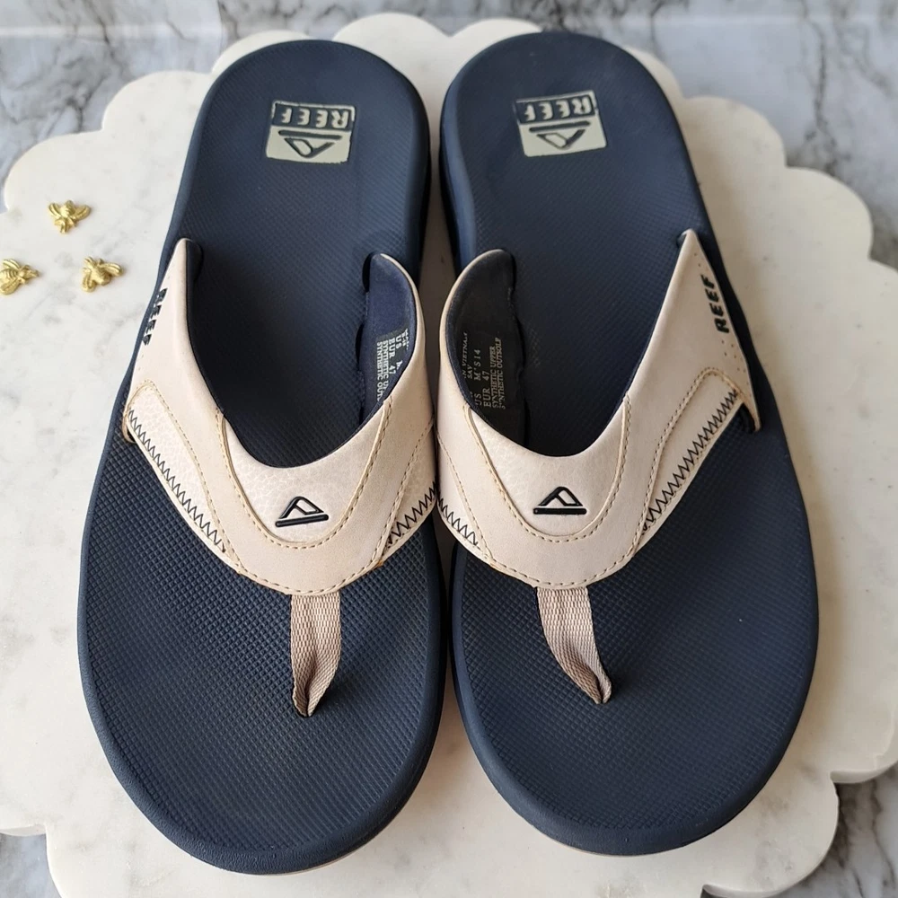 Reef Men's Slip-On Sandals Size 14 Gray/Navy Blue Synthetic *Brand - Reef *Men's Slip-On Sandals Synthetic *Color - Gray/Navy Blue *Size - 14 *Condition - Good (Pre-Owned) (Please check the pictures from above to see the condition of the shoes.) *Please see all the photos in Zoom to appreciate the details. (Please check for all the sizes on some of the pictures from above) (The color may vary due to the lighting in the photographs.) *I described this product the best way possible. *If you have any questions, please let me know.