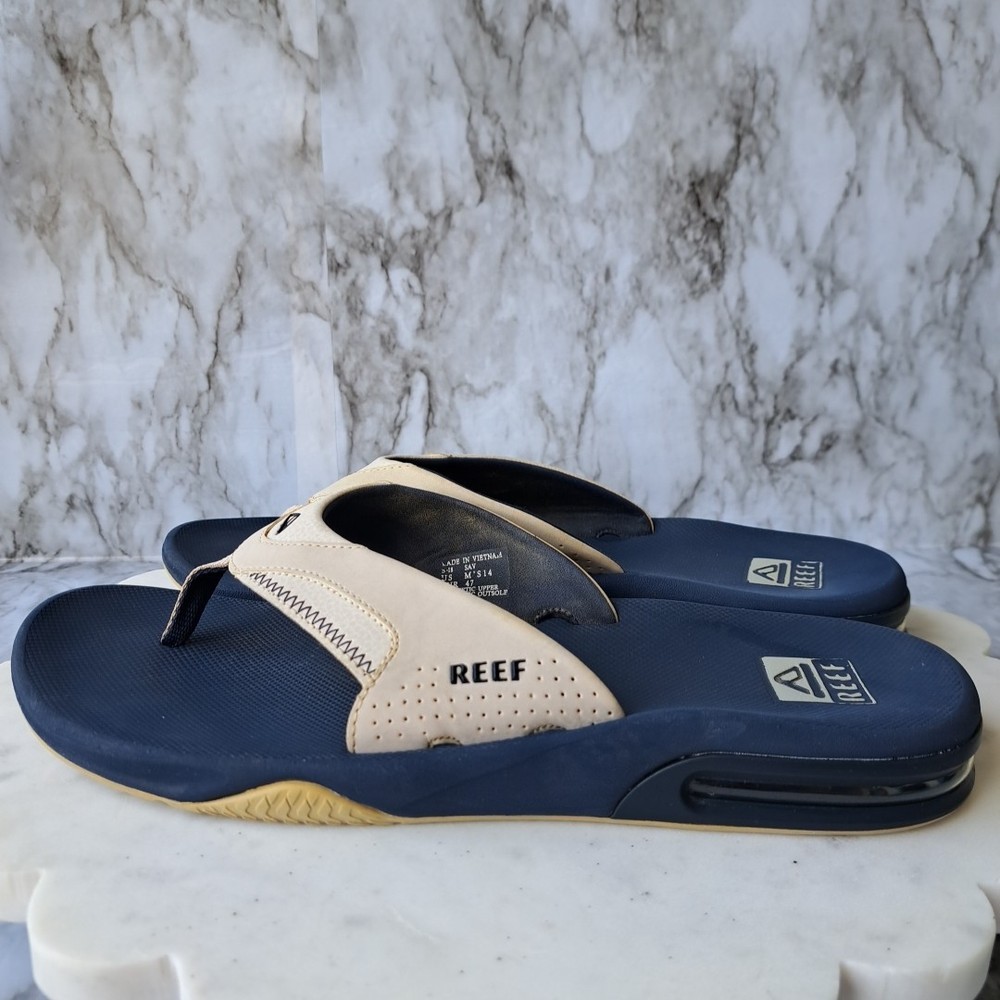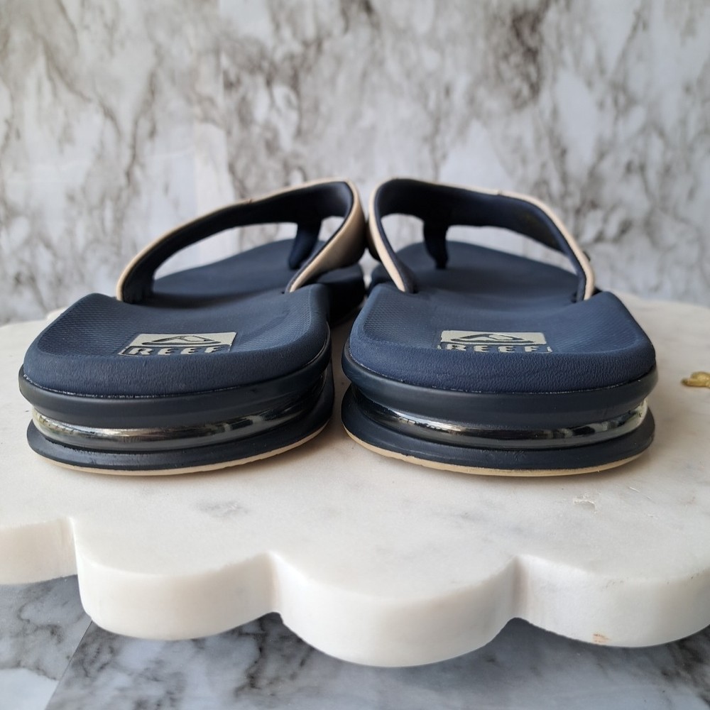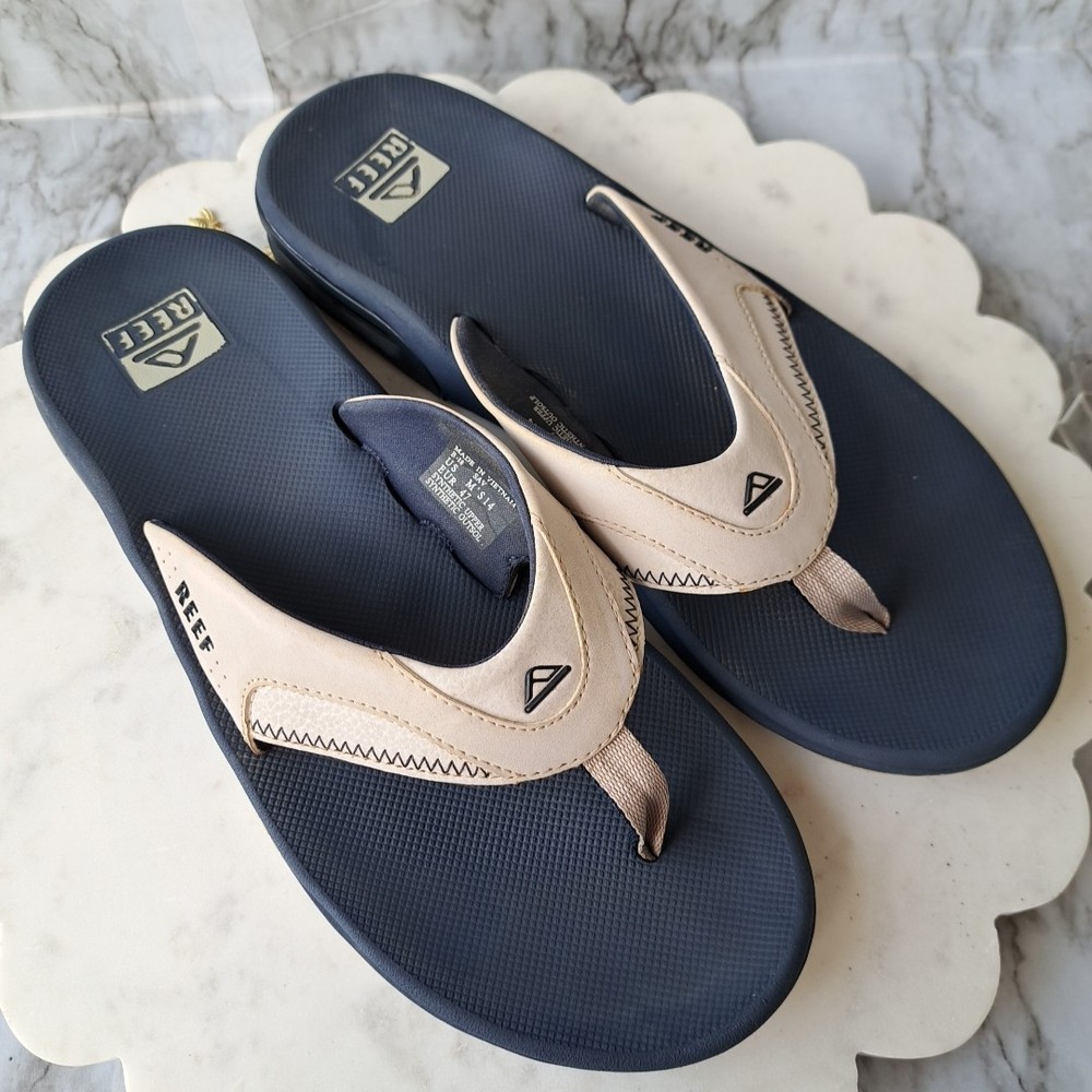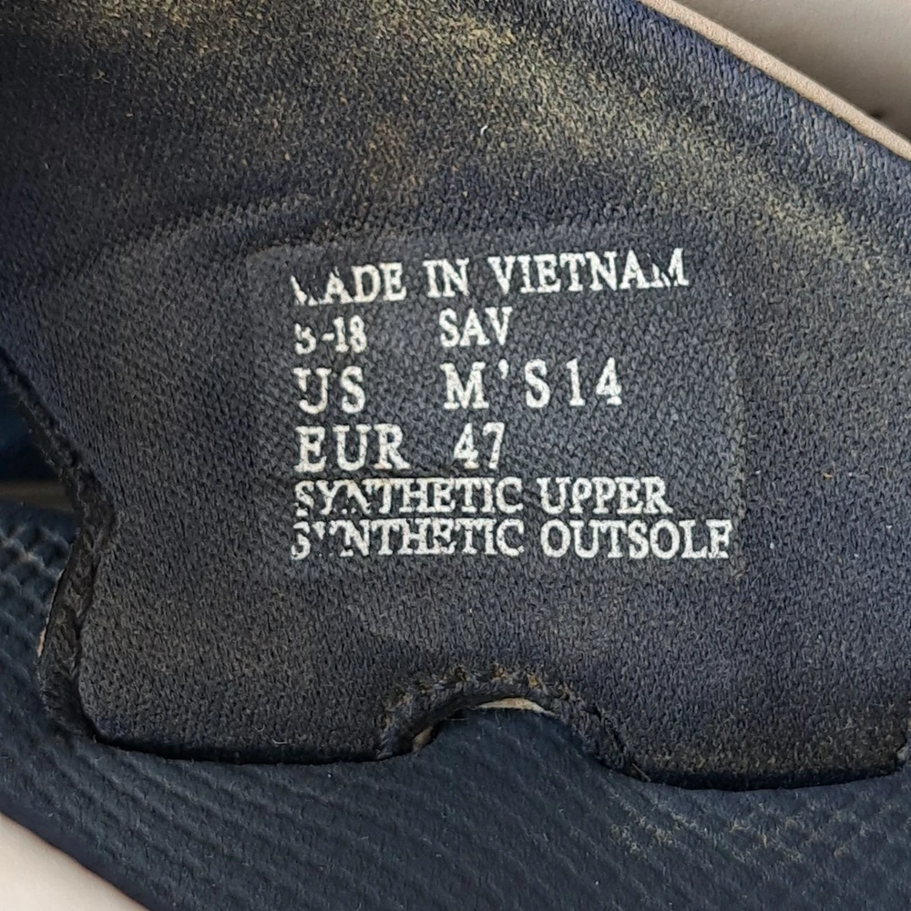 Type: Sandal Closure: Slip On EU Shoe Size: 47 Brand: Reef Department: Men Color: Gray/Navy Blue Features: Comfort Outsole Material: Synthetic Model: Reef Country/Region of Manufacture: Vietnam Style: Slip-On Seller Notes: “Used, in good condition” Upper Material: Synthetic Insole Material: Synthetic US Shoe Size: 14