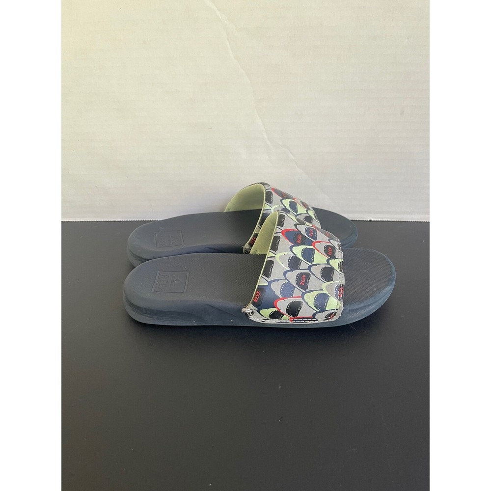 Dive into summer fun with these playful Reef slides! A whimsical shark print adorns the straps, adding a splash of personality to these casual sandals. Imagine the delight on your child's face as they slip into these comfortable and easy-to-wear shoes, perfect for a day at the beach, a trip to the pool, or simply lounging around the house. The slip-on design makes them ideal for an independent kids who want to get ready quickly and head out for adventures. Color: Blue Model: Reef Slides Character: Shark Performance/Activity: Beach, Pool, Casual Character Family: Shark Upper Material: Synthetic Insole Material: Foam Department: Unisex Kids Heel Height: Flat (Under 1 in) Keywords: Reef, slides, sandals, kids, slip on, casual shoes, shark print, summer, beach, pool, footwear, girls, boys