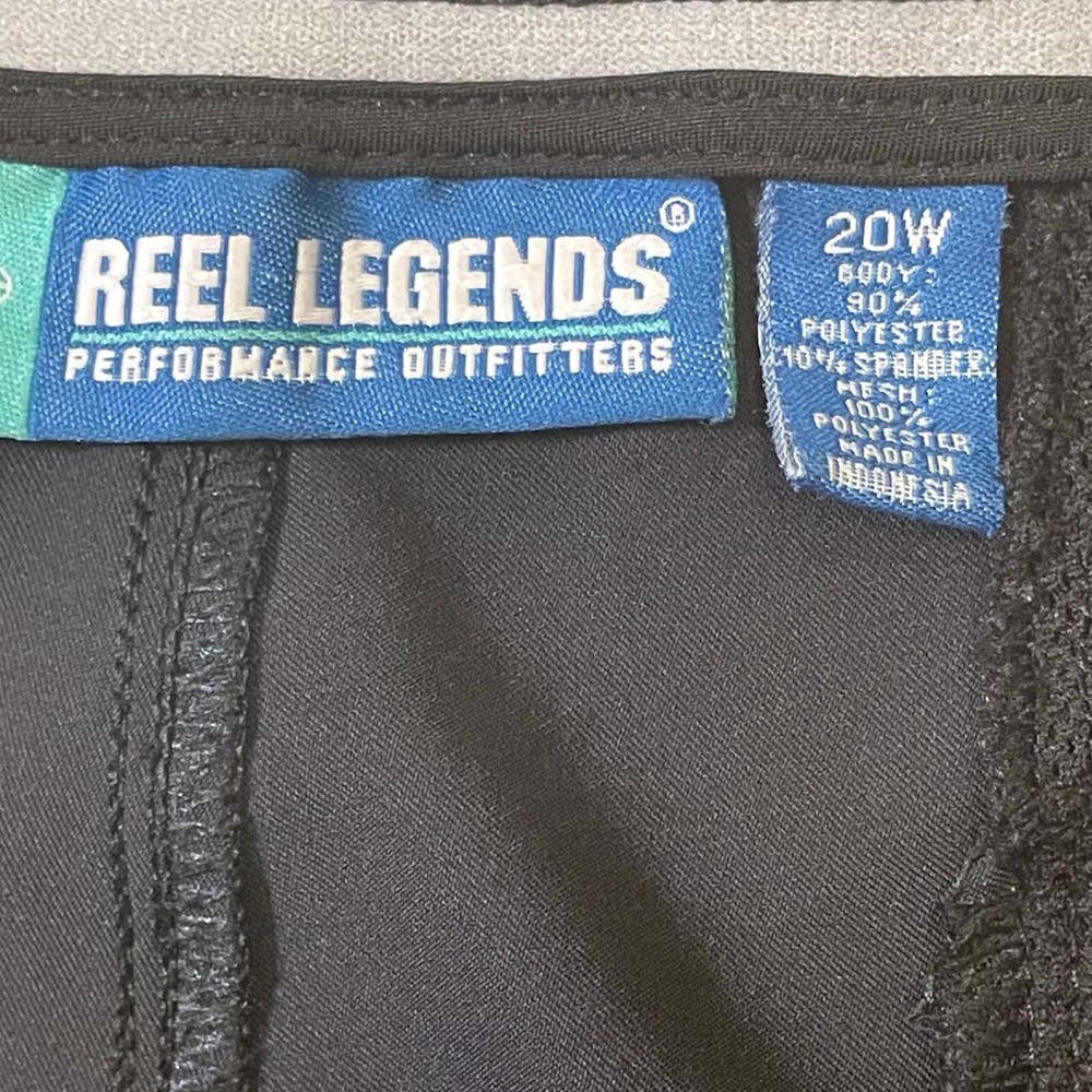 Performance/Activity: Golf, Walking, Running & Jogging, Gym & Training, Cross Training Material: Polyester, Spandex, Polyester Blend, 100% Polyester, 10% Spandex Fabric Type: Mesh Color: Black Brand: Reel Legends Features: Lightweight, Stretch, Breathable, Quick Dry, Pockets Department: Women Country of Origin: Unknown Size Type: Plus Occasion: Activewear, Casual, Travel Waist Size: 40 in Size: 20W Style: Athletic Fit: Regular
